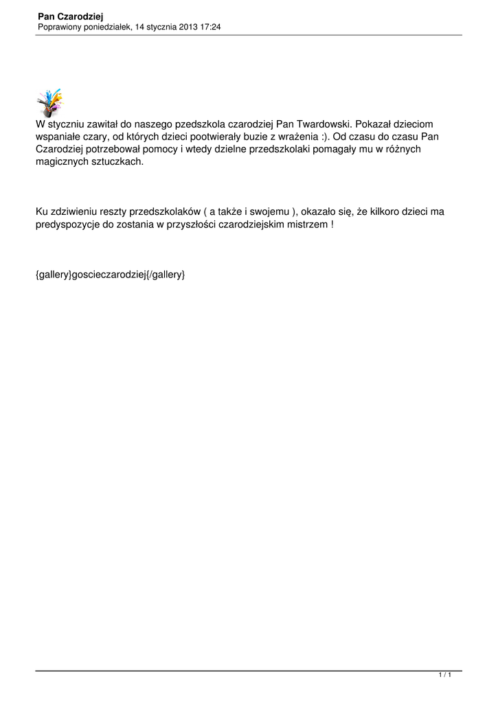 Czarodziej potrzebował pomocy i wtedy dzielne przedszkolaki pomagały mu w różnych