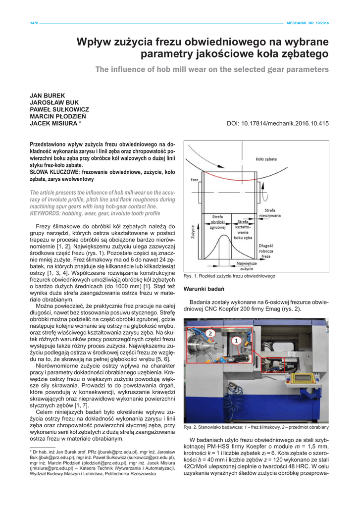 Wpływ zużycia frezu obwiedniowego na wybrane parametry