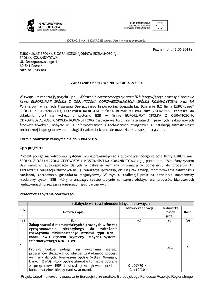 ZAPYTANIE OFERTOWE NR 1/POIG/8.2/2014