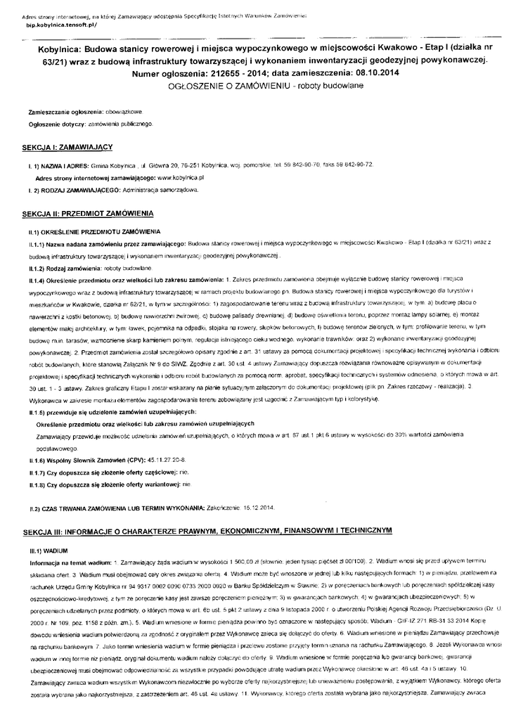 Numer ogloszenia:2'12655- 20'l4: data zamieszczenia:08.10.2014