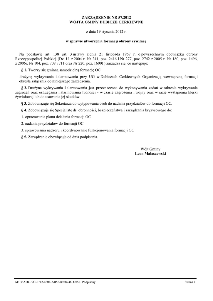 Zarządzenie Nr 57.2012 - Urząd Gminy Dubicze Cerkiewne