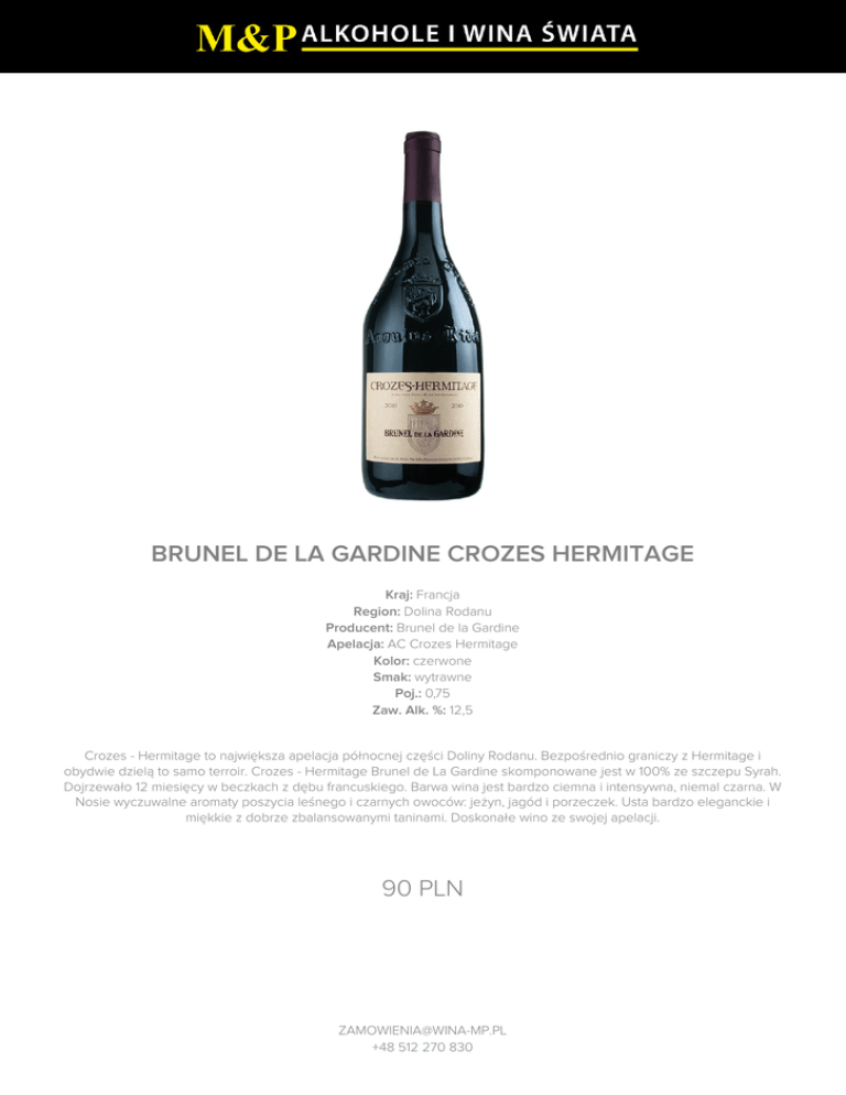BRUNEL DE LA GARDINE CROZES HERMITAGE 90 PLN