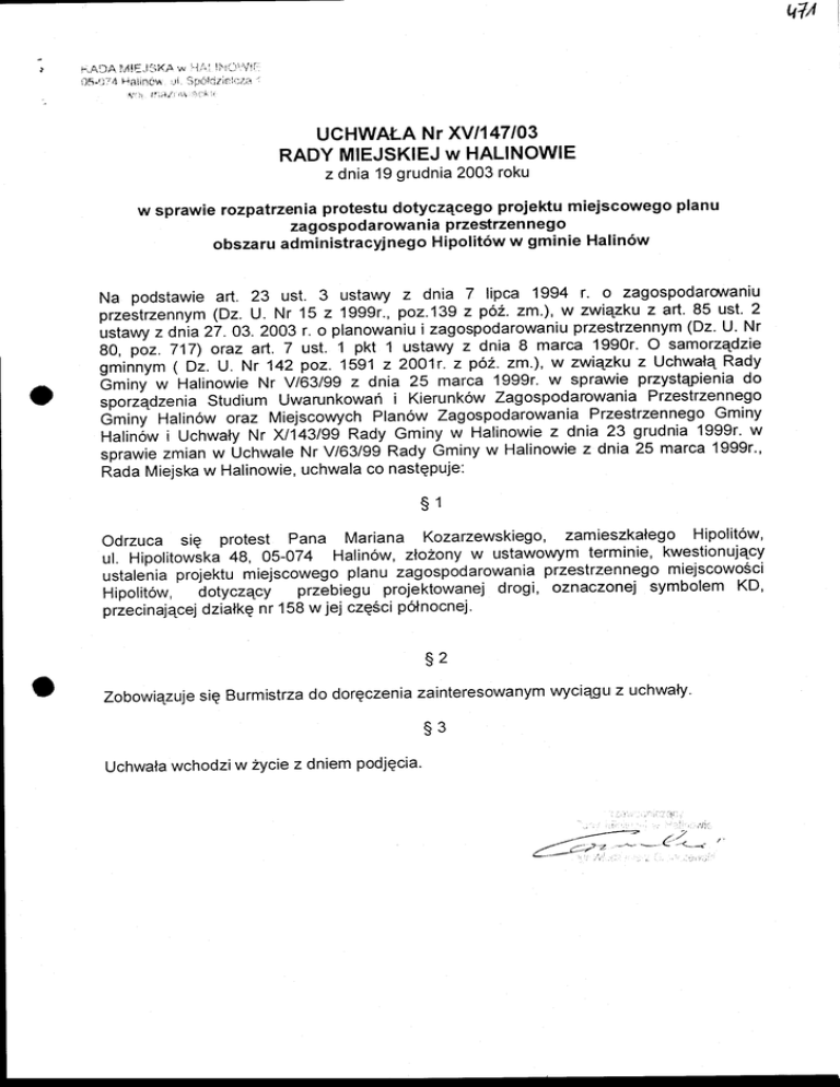ul. Hipolitowika48, os-074 Halin6w, zlozonyw ustawowymterminie, kwestionujqcy
