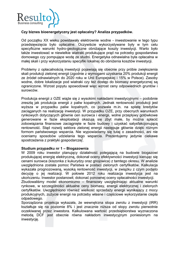 Artykuł Resulto Czy biznes bioenergetyczny jest opłacalny