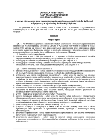 UCHWAŁA NR LI/1048/05 RADY MIASTA BYDGOSZCZY ! ! " # $ % % & ' " #$ % ' $ $ ( ) . + & * $ $ + , + 1 23 45" 5 6 7 8 /0 +. 6 $ % & 9 & &0 8 )% + . / : & '; < + & = & $ $ + ) $ + +: & %& % >! ? 4 %) $ / 0' + + ' & + /0 + * + , + . 0 /0 + 5 @ % 9 & + & + /0 + @ % 9 & $ A $ & + A + $ & +:0 , / $ & + /0 + %) # # # ' $ 4 + B & & &0 $ 9 $ 9 $ A + & # $ + & /0 0 & C +/ 0 +- & : + + , & 9 # / C : # $ + # & $ +- C C$ 9 $ $ 9 : &0 0 / C # # $ & + : $ & %9 $ + $ > % 0 + $ +- + &) B &+ /+% C : / + + ) ) B + %) B ) 9 $ 9 B2 ) ( +D C : & + : 9 , A + $ B +- $ C : $ $ 9 +9 @ ?# C : B 9 0 : ) 9 +: + $ + 0' + , 9 + A A + & + + &@ & + : /+% 9 0@ B & + 9 $ + + ) 0 &0 +/ + #@ E &0 + @ B + $ + @ + & + F &0 @ + & $ 9 0 % &0 @ B + &0 + & +- ' : + ) $ &0 6# 2( D E C !# $ &0 & 9 "$ $ +% 9 + $ & $@ "# C : B + &0 # / &0 C : +- @ +B / B @ &0 9 9 & &0 + A +& &0 0 # G : B + +: 9 B + A + & 9 9 + & + @ + G : B ) + A & & & + &+ + & A + + & : + +9% 0 + + $ / $ 9 + A &0 9 + $ : ) 9 & $ %@ + C : B + + + ' 0 /0 + & & $ / +A A &@ & C : B + < + $ ) + ) + 0 % + ) / +- & ! @ A >E ? $ $ &C : B 9 & 9 , ) +$ $@ C : B + ) $ C $ +) +/ + &0 0 + 9 @ $ C : B & 0 $ /% 7 8 . 0 0 + ( &% + ) : $ A : & : B 9 0 &0 /0 # # # 6# !# # ' ( $ 9 9 / % & ' # # A + ) + ) # # , , ( $ $ $ , $ : # "# -/ # # 9 $ / + @ / + 0 +/ ' $ 9 0 &0 $ / 9 @ -/ $ $ + : + 0 % / 9 0 ' @ + / / @ ) + + & 9 + @ + 9 +-9 + -/ + &0 $ 9+ / 9 $@ + < +- + / 9 0 99 9 %9 $ +: : $ $ % $@ $ +/ $ ) @ & 9 9 - + + & A + 0 : + $ 9 & &0 & 9 A + $ & , + &@ 0 + & G + $ - - H &0 9 & # # # # 6# !# # $ / $ 9+ / # 9&% &@ @ +9 &0 $ $ , $ +: &@ - @ 9 - / :0 &0 $ $ & $@ # 9 # $ +- + ) + ) * & / :0 & + -/ & & $ # # # , & : + + @ + 9 & +- & &0 @ + < +- + / + < +- / + & 9 0 ' 9 / 0 % & 9&% & A 0 @ @ ! ) $ $ 9 ) + & # 6# !# # # -/ $ $ $ +) $ + ) 9 + * -/ 9 & - &0 ) @ @ + & # # / + 9 +- @ 9 & / :0 & + 0 ' - A / 0 % / 0 % + $ &@ / ) - 0 - - $ ) , A + $ & @ + ) * + * & / :0 & + -/ / ) $ 9 ) 9 & $ &0 0 ' # # # ++ ) @ + < +& / :0 & + @ / / " 9 A 9&% &0 ) , % &0 # # $ # + ' ) ' ) + 0 9 0 &0 @ -: -: $ $ ) ) + ) & @ # # 6# !# + 9 @ 9- +@ 9 A >E ? G ) / & $ 9 / : ) , + @ # 9 / : 7 + & . # A $ ) "# 9 A + &0 % &0 0 A & # & + +/ & @ # & + 0 G $ &@ $ $ I / H 9 ( +- D & 9 J$ $ D & 9 J$ / , + ( -/ ( @ & -: A ' % & +-: + " $ $ $ &% $ 0 9 >2 K , + ?@ 0 &0 #( + & ' $ - 9 0 &0 0 & -/ % + $ - $ 9 9&% & - # $ # % + 9 9# # 9 # 0 , & * 5I 9 I2 + $ 0 ' 9&% & A 0 & & $ & 9 $ $ 9 9&% & A 8 5I E " 0 $ # A# # 0 0 ! # E # & 9+ # 9 & 0 $ 6# 9 0 9 !# 9 ( # # # # 0 ,+ & $ 9 D , + $ 9 L 9 $ 9 D G2 D G 1 @ * 5I * 5I 0 & 0 % 9 & 2 ) + 8 )% + . @ $ + & 9&% & A 0 $ % -& -: $ A + ) & + & G & -& / ) / :0 $ $ + 0 + & $ $ @ & + + & A + & 9 +0 $ 9 / 0 / $ + & $ G +/ $ $ 0 9 +$ +: $ A + & &0 $ + # 0: ) ) + @ & + + & & 9 + & /0 8 5I @ & + + & & 9 $ A + -+ & . ( + D + & $ + & + $ # # ' 9&% & A 0 $ $ + & % 9 +- $ 9 0 & + & 9 + &0 $ &0 $ 9$ + & 9 $ &0 + / , &0 $ ++ $ G ) $@ $ 9 +9 + ) + 0 &0 $ + + 9 / : 0 - + + & $ : &0 $ 9 +&0 + & 9 @ $ /+ 9 & 9 0 & 9 /0 & 9 + A + & @ 0 9 % : G 0 9 + # , -/ $ + & : B /0 9 + A + & 9 A 9 + 0 9 /0 9 + & $ + & & : + + / 9 + ) $ -/ $ # 9 / / $ ) . / # H 9 + J$ # D & 9 + ) # 9 0 & -: ) # $ 9# $ # $ # # + + A# + + # 9 0 & 0 0: 9 ) 1 -9 & ) & / & I 2 6I 2 ! * 5I D G2 / : 0 $ ( 7 + & . 9 0 &0 + + ) $ %9 $ - $@ 9 * 5I "D G 1 D / : 0 $ I / ( +$ J$ / , + ) , + 9 0 &0 + + $ %9 $ - $@ 0 $ ) $ A + & 9 $ ' $ + + / 0 $ A + & $ &0 $ A + / &0 $ ++ $ 9 G9/ $ : + /0+ ) ,) $ ) - /0+ $ : $ $ +$@ + + & & +0 / 0B ) + A + & + & $ G +/ $ $ $ # $ +$ +: $ A + & &0 $ + / 9 # ) + @ 9 D & 9 0 8 5I ( -/ 9 E L # 6# + - %9 % +- + : & + $ + % & 9 + : ) , # B % +/- , 0 & $ A + & 4 1 +0 & + ) B 9 & $ # + : + + , + )B + $ & 9 9 + / # +- 9 $ &A 9 9 + $ 9 & &1 &0 0 & & 9 & $ +- & + + A >E ? , $ A &# 2 9 E & - + $ 9 + $ $ & 0 + & 99 , % / )B $ -/ & + 9 + 1 : /2 $ 9 1 + & & + ) $ + G $ -/ $@ 0 &0 & A 0 $ + 0 0' + , &) A + &+ + &@ $ : + @ & M 9 & 9 +- & $ @ &0 + 9 +- / & $ & + # 0 + +: $ $ - + + 9 & / # 0 ) 0 + $ + 1 % A% >E ? $ * 5I D G2 "D G 1 I 9 ++ $ $@ : B 9 % &0 $ 9 $ 9 , $ $ + ) 5 % 9 0 & + ) # A / * 3 9 / )B $ + 0 B & @ $ 6I 2 ! * 5I 9 + + + 9% 0 &0 & + , % $ . E D 9 : +/ !# $ & +A + & $ & $ 9 & & $ 9 + + C A & + C + & -/ 0 & 6 7 1 1 K / : 0 , +? . - $ : & 0 / G $ / # % 0 + $ & ) 0 & -/ : & $ : + + + 0 B 4 1 ) 0 &0 & + % / / 9 ! * 5I +- & + * 5I $ + ) / / 8 / D G2 "D G 1 D $ &% >2 $ %9 $ - + 0 + 9 1 / # B : /0 -: $ $ : )B / / + 9 $ /0 &0 & / :0 $ 9 $ . # 8 9 /+ 9 -: # # A 8 9 &# # & / 1 &0 $ & 1 $ , A 9 $ 9 0 $ + 0 : + & + %+ 2( D E & & 0 &0 @ & , & &@ $ $ $ &@ $ $ ) 8 )% + , & 9 / 0+ + ) :+ & - /0 . / $ $ + &@ & # # %9 % 9 % &0 & A + $ & + $ 0 0 @ 6# /+ $ 9 $ % &% &0 & A + 0 & 9 ) 9 / 0 % & & & + $ % / :9 + & + &0 $ + ) $ 9 0 &0 $ $@ !# 9 / + %G % & + & 0 & 44 A ) & + & $ ; < + & = & & 9 D G2 & + 0 B 0 + $ + ) $ @ # 9 / + + & &' # ) +$ & + + + > ? $ 9 D G2 = &# >N ? 9# $ +- $ 9 : ) & ) +9 & + & & % 9 / % ' 9 / ) +9 & + & & # 9 + / $ $ 9 0 + % / :9 + & + & $ + ) $ $ %9 $ # # & 9 & + & & % 9 / % 0 &0 & 9 + &0 $ $ 9 +) +/ # 9 0 & + & $ 9 +) +/ + &0 $ 9 +9 9 / & 9 # 9 9 & + & & 9 0 & + & &0 $ 9 +) +/ @ # 9 / + + & &' # ) +$ & + + + $ D G2 + . 9# ) + $ 0 $ $ &% + & &0 # 9 % ) +$ $ $ +$ $ $ # + & 9 $9 / : ) 0 /+ $/ % 9 + % $ - : + $@ "# 9 / + G 9 / 9 & & &) ) 9 0 $ 9 +/ @ # 9 / + % 0' # % + 0 , $ 0 + 0 9 $ + $ $ 0 $ <- / & $ $ ) & A + ) $ $ %9 $ - $ 9# 9 0 & + & $ & $ % + 9 & / @ % & + $ A + +$ @ # 9 / + % + 0' # &0 $ 9 $ & + $ 9 ++ $ 9 * 5I &0 & & 9 & + & + 9 & & & A & > 444?@ % $ 9 +& + & & 9 + & + & J / J 7 + &@ &% > 444? : B %+ 9 0: % & A @ + 9 & 9 & & 9 0 % $ I / ( +- D & 9 $ J$ / , + ) , + 9# & + $ 9 +0 , G + & $ 9 ! * 5I 9 + + 9 8 5I & + & & A & > 444? 9 & + & & A & % & + & 9 L@ % : % + B D & 9 0 + 9 0 ( -/ ( & + & # # % 9 9 # / : 7 + % &@ % ) 9 / A 9 $ %9 # # $$ : 9 A $ + 1 4 & - A F + $' 4 & + % + ) + % 0 & / & B : ) 0 $ 0 + $ & & 9 $ A B & + +/ + -+ + - C %9 4 $@ - 8 & - $@ % 9 + 9 / @ 1 / $ + / 9 , C / 0 8 1 & /' 9&% & A 0 9 2 ) & % # 84 * 5I & + $ 8 )% + . @ &% 0 , 9 + & + & G + & 9+ + + & + & 0 9 + & & / :0 / :0 +: / 8 9 * 5I - 0 & & - -: $