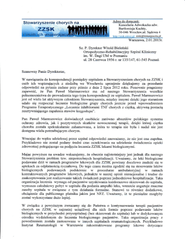 tekst pisma - Stowarzyszenie chorych na ZZSK
