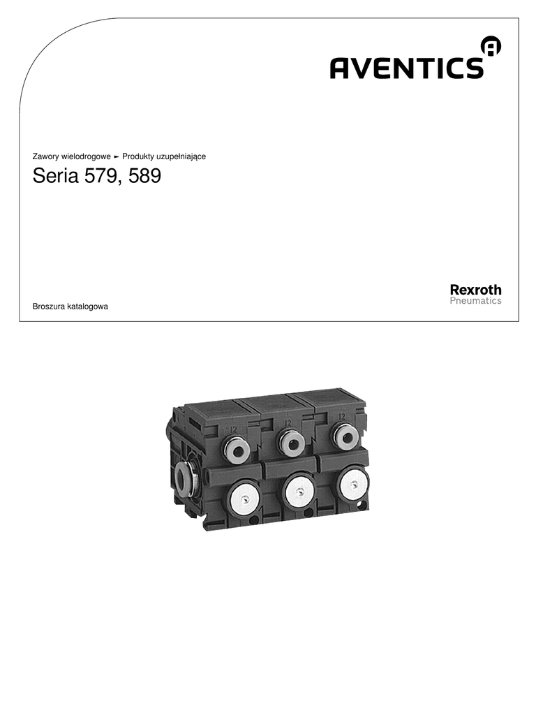 Zawory wielodrogowe ► Produkty uzupełniające Seria 579, 589 Broszura katalogowa 2 Zawory wielodrogowe ► Produkty uzupełniające Seria 579, 589 Zawór 3/2-drogowy, Seria 579 ► Qn = 520 - 850 l/min ► króciec rurowy ► wyjście króćca sprężonego powietrza: Ø6x1 Ø 8x1 ► zawór pojedynczy 3 Zawór 3/2-drogowy, Seria 579 ► Qn = 600 - 850 l/min ► króciec rurowy ► wyjście króćca sprężonego powietrza: Ø 8x1 ► do montażu blokowego 5 Program podstawowy, Seria 579, 589 Tłumiki akustyczne, Seria SI1 Dodatkowe przyłącze sprężonego powietrza Kołek gwintowany Tabliczki opisowe on line Akcesoria Pogrubione numery materiałowe są dostępne w centralnym magazynie w Niemczech, informacje szczegółowe patrz Koszyk Katalog elementów pneumatycznych, PDF online, stan 2015-06-05, © AVENTICS S.a.r.l., zmiany zastrzeżone 7 7 8 8 3 Zawory wielodrogowe ► Produkty uzupełniające Zawór 3/2-drogowy, Seria 579 ► Qn = 520 - 850 l/min ► króciec rurowy ► wyjście króćca sprężonego powietrza: Ø6x1 - Ø 8x1 ► zawór pojedynczy P579_440 Konstrukcja zawór osadowy zasada uszczelnienia uszczelniający miękko Ciśnienie robocze min/max 0,5 bar / 8 bar Ciśnieniesterujące min./max. 2 bar / 10 bar Temperatura otoczenia min./maks. -15°C / +60°C Temperatura medium min./maks. -15°C / +60°C Medium Sprężone powietrze Maks. wielkość cząstek 5 µm zawartość oleju w sprężonym powietrzu 0 mg/m³ - 1 mg/m³ Materiały: Obudowa poliamid uszczelki kauczuk nitrylowy Uwagi Techniczne ■ Należy zachować min. wartość ciśnienia sterującego, gdyż w przeciwnym razie może dojść do błędnych załączeń i ew. awarii zaworu! ■ Punkt rosy pod ciśnieniem musi leżeć co najmniej 15 °C poniżej temperatury otoczenia i medium i może wynosić max. 3 °C. ■ Zawartość oleju w sprężonym powietrzu musi być stała przez cały okres żywotności. ■ Stosuj wyłączne oleje zaaprobowane przez firmę AVENTICS, patrz rozdział „Informacje Techniczne“. ■ Przy temperaturze otoczenia do 40°C max. ciśnienie robocze wynosi 10 bar. Króciec sprężonego powietrza NC NO wejście wyjście Ø6x1 Ø6x1 Ø 8x1 Ø 8x1 Ø6x1 Ø6x1 Ø 8x1 Ø 8x1 Przyłącze sterujące Ø4 Ø4 Wartość przepływu Qn [l/min] Ciężar Ad. [kg] 520 0,062 850 0,058 520 0,062 600 0,059 1) Ciśnienie sterujące w przyłączu 12 musi być większe od ciśnienia w przyłączu 1 Przepływ znamionowy Qn przy 6 bar i Δp = 1 bar Produkty uzupełniające Pogrubione numery materiałowe są dostępne w centralnym magazynie w Niemczech, informacje szczegółowe patrz Koszyk Katalog elementów pneumatycznych, PDF online, stan 2015-06-05, © AVENTICS S.a.r.l., zmiany zastrzeżone Numer materiałowy 5794400000 1) 5794600000 5794400010 1) 5794600010 4 Zawory wielodrogowe ► Produkty uzupełniające Zawór 3/2-drogowy, Seria 579 ► Qn = 520 - 850 l/min ► króciec rurowy ► wyjście króćca sprężonego powietrza: Ø6x1 - Ø 8x1 ► zawór pojedynczy Rozmiary D579_440 1) przyłącze 1 2) przyłącze 2 3) spaliny przyłącze 3 nie mogą być dławione 4) przyłącze 12 5) otwór nieprzelotny o głębokości 6 mm dla wkrętu do blachy 3,5 mm 6) możliwość zamocowania tabliczki opisowej Produkty uzupełniające Pogrubione numery materiałowe są dostępne w centralnym magazynie w Niemczech, informacje szczegółowe patrz Koszyk Katalog elementów pneumatycznych, PDF online, stan 2015-06-05, © AVENTICS S.a.r.l., zmiany zastrzeżone 5 Zawory wielodrogowe ► Produkty uzupełniające Zawór 3/2-drogowy, Seria 579 ► Qn = 600 - 850 l/min ► króciec rurowy ► wyjście króćca sprężonego powietrza: Ø 8x1 ► do montażu blokowego P579_060 Konstrukcja zawór osadowy zasada uszczelnienia uszczelniający miękko Zasada zblokowania Zasada tarczowa Ciśnienie robocze min/max 0,5 bar / 8 bar Ciśnieniesterujące min./max. 2 bar / -- Temperatura otoczenia min./maks. -15°C / +60°C Temperatura medium min./maks. -15°C / +60°C Medium Sprężone powietrze Maks. wielkość cząstek 5 µm zawartość oleju w sprężonym powietrzu 0 mg/m³ - 1 mg/m³ Materiały: Obudowa poliamid uszczelki kauczuk nitrylowy Uwagi Techniczne ■ Należy zachować min. wartość ciśnienia sterującego, gdyż w przeciwnym razie może dojść do błędnych załączeń i ew. awarii zaworu! ■ Punkt rosy pod ciśnieniem musi leżeć co najmniej 15 °C poniżej temperatury otoczenia i medium i może wynosić max. 3 °C. ■ Zawartość oleju w sprężonym powietrzu musi być stała przez cały okres żywotności. ■ Stosuj wyłączne oleje zaaprobowane przez firmę AVENTICS, patrz rozdział „Informacje Techniczne“. ■ Przy temperaturze otoczenia do 40°C max. ciśnienie robocze wynosi 10 bar. Króciec sprężonego poWartość wietrza przepływu Zasada zblokowania wyjście Przyłącze sterujące Zawór wejściowy Zawór przyłączeniowy NC Ø 8x1 Ø4 Qn Ciężar [l/min] [kg] 850 0,06 0,056 Zawór końcowy 0,062 Zawór wejściowy 0,06 Zawór przyłączeniowy NO Ø 8x1 Zawór końcowy Ø4 600 Ad. 0,057 0,058 1) Ciśnienie sterujące w przyłączu 12 musi być większe od ciśnienia w przyłączu 1 Przepływ znamionowy Qn przy 6 bar i Δp = 1 bar Produkty uzupełniające Pogrubione numery materiałowe są dostępne w centralnym magazynie w Niemczech, informacje szczegółowe patrz Koszyk Katalog elementów pneumatycznych, PDF online, stan 2015-06-05, © AVENTICS S.a.r.l., zmiany zastrzeżone Numer materiałowy 5790600000 1) 5791600000 5792600000 5790600010 1) 5791600010 5792600010 6 Zawory wielodrogowe ► Produkty uzupełniające Zawór 3/2-drogowy, Seria 579 ► Qn = 600 - 850 l/min ► króciec rurowy ► wyjście króćca sprężonego powietrza: Ø 8x1 ► do montażu blokowego Rozmiary D579_060 1) przyłącze 1 2) przyłącze 2 3) spaliny przyłącze 3 nie mogą być dławione 4) otwór nieprzelotny o głębokości 6 mm dla wkrętu do blachy 3,5 mm 5) możliwość zamocowania tabliczki opisowej * moduł króćca powietrza (