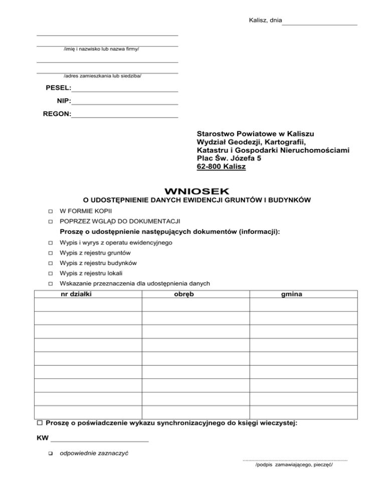 wniosek o wypis i wyrys - Starostwo Powiatowe w Kaliszu