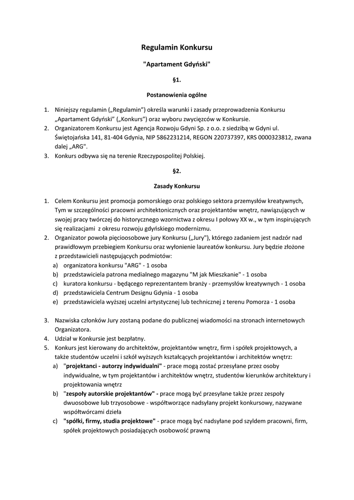 Regulamin Konkursu - Agencja Rozwoju Gdyni