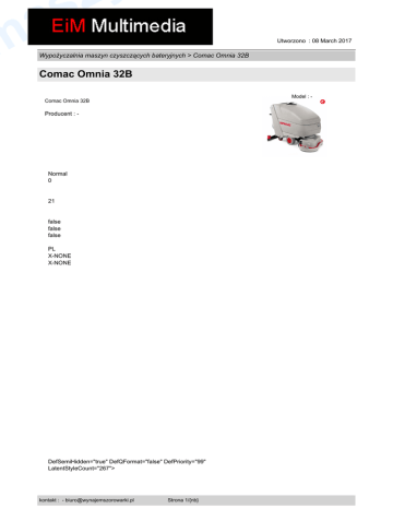 s a m Utworzono : 08 March 2017 Wypożyczalnia maszyn czyszczących bateryjnych > Comac Omnia 32B Comac Omnia 32B Model : - Comac Omnia 32B Producent : - Normal 0 21 false false false PL X-NONE X-NONE DefSemiHidden="true" DefQFormat="false" DefPriority="99" LatentStyleCount="267"> kontakt : - [email protected] Strona 1/{nb} s a m Utworzono : 08 March 2017 Wypożyczalnia maszyn czyszczących bateryjnych > Comac Omnia 32B Comac Omnia 32B UnhideWhenUsed="false" QFormat="true" Name="Normal"/> UnhideWhenUsed="false" QFormat="true" Name="heading 1"/> UnhideWhenUsed="false" QFormat="true" Name="Title"/> UnhideWhenUsed="false" QFormat="true" Name="Subtitle"/> UnhideWhenUsed="false" QFormat="true" Name="Strong"/> UnhideWhenUsed="false" QFormat="true" Name="Emphasis"/> UnhideWhenUsed="false" Name="Table Grid"/> UnhideWhenUsed="false" QFormat="true" Name="No Spacing"/> UnhideWhenUsed="false" Name="Light Shading"/> UnhideWhenUsed="false" Name="Light List"/> UnhideWhenUsed="false" Name="Light Grid"/> UnhideWhenUsed="false" Name="Medium Shading 1"/> UnhideWhenUsed="false" Name="Medium Shading 2"/> UnhideWhenUsed="false" Name="Medium List 1"/> UnhideWhenUsed="false" Name="Medium List 2"/> UnhideWhenUsed="false" Name="Medium Grid 1"/> UnhideWhenUsed="false" Name="Medium Grid 2"/> kontakt : - [email protected] Strona 2/{nb} s a m Utworzono : 08 March 2017 Wypożyczalnia maszyn czyszczących bateryjnych > Comac Omnia 32B Comac Omnia 32B UnhideWhenUsed="false" Name="Medium Grid 3"/> UnhideWhenUsed="false" Name="Dark List"/> UnhideWhenUsed="false" Name="Colorful Shading"/> UnhideWhenUsed="false" Name="Colorful List"/> UnhideWhenUsed="false" Name="Colorful Grid"/> UnhideWhenUsed="false" Name="Light Shading Accent 1"/> UnhideWhenUsed="false" Name="Light List Accent 1"/> UnhideWhenUsed="false" Name="Light Grid Accent 1"/> UnhideWhenUsed="false" Name="Medium Shading 1 Accent 1"/> UnhideWhenUsed="false" Name="Medium Shading 2 Accent 1"/> UnhideWhenUsed="false" Name="Medium List 1 Accent 1"/> UnhideWhenUsed="false" QFormat="true" Name="List Paragraph"/> UnhideWhenUsed="false" QFormat="true" Name="Quote"/> UnhideWhenUsed="false" QFormat="true" Name="Intense Quote"/> UnhideWhenUsed="false" Name="Medium List 2 Accent 1"/> UnhideWhenUsed="false" Name="Medium Grid 1 Accent 1"/> UnhideWhenUsed="false" Name="Medium Grid 2 Accent 1"/> UnhideWhenUsed="false" Name="Medium Grid 3 Accent 1"/> UnhideWhenUsed="false" Name="Dark List Accent 1"/> UnhideWhenUsed="false" Name="Colorful Shading Accent 1"/> UnhideWhenUsed="false" Name="Colorful List Accent 1"/> UnhideWhenUsed="false" Name="Colorful Grid Accent 1"/> UnhideWhenUsed="false" Name="Light Shading Accent 2"/> UnhideWhenUsed="false" Name="Light List Accent 2"/> UnhideWhenUsed="false" Name="Light Grid Accent 2"/> UnhideWhenUsed="false" Name="Medium Shading 1 Accent 2"/> UnhideWhenUsed="false" Name="Medium Shading 2 Accent 2"/> kontakt : - [email protected] Strona 3/{nb} s a m Utworzono : 08 March 2017 Wypożyczalnia maszyn czyszczących bateryjnych > Comac Omnia 32B Comac Omnia 32B UnhideWhenUsed="false" Name="Medium List 1 Accent 2"/> UnhideWhenUsed="false" Name="Medium List 2 Accent 2"/> UnhideWhenUsed="false" Name="Medium Grid 1 Accent 2"/> UnhideWhenUsed="false" Name="Medium Grid 2 Accent 2"/> UnhideWhenUsed="false" Name="Medium Grid 3 Accent 2"/> UnhideWhenUsed="false" Name="Dark List Accent 2"/> UnhideWhenUsed="false" Name="Colorful Shading Accent 2"/> UnhideWhenUsed="false" Name="Colorful List Accent 2"/> UnhideWhenUsed="false" Name="Colorful Grid Accent 2"/> UnhideWhenUsed="false" Name="Light Shading Accent 3"/> UnhideWhenUsed="false" Name="Light List Accent 3"/> UnhideWhenUsed="false" Name="Light Grid Accent 3"/> UnhideWhenUsed="false" Name="Medium Shading 1 Accent 3"/> UnhideWhenUsed="false" Name="Medium Shading 2 Accent 3"/> UnhideWhenUsed="false" Name="Medium List 1 Accent 3"/> UnhideWhenUsed="false" Name="Medium List 2 Accent 3"/> UnhideWhenUsed="false" Name="Medium Grid 1 Accent 3"/> UnhideWhenUsed="false" Name="Medium Grid 2 Accent 3"/> UnhideWhenUsed="false" Name="Medium Grid 3 Accent 3"/> UnhideWhenUsed="false" Name="Dark List Accent 3"/> UnhideWhenUsed="false" Name="Colorful Shading Accent 3"/> UnhideWhenUsed="false" Name="Colorful List Accent 3"/> UnhideWhenUsed="false" Name="Colorful Grid Accent 3"/> UnhideWhenUsed="false" Name="Light Shading Accent 4"/> UnhideWhenUsed="false" Name="Light List Accent 4"/> UnhideWhenUsed="false" Name="Light Grid Accent 4"/> UnhideWhenUsed="false" Name="Medium Shading 1 Accent 4"/> UnhideWhenUsed="false" Name="Medium Shading 2 Accent 4"/> kontakt : - [email protected] Strona 4/{nb} s a m Utworzono : 08 March 2017 Wypożyczalnia maszyn czyszczących bateryjnych > Comac Omnia 32B Comac Omnia 32B UnhideWhenUsed="false" Name="Medium List 1 Accent 4"/> UnhideWhenUsed="false" Name="Medium List 2 Accent 4"/> UnhideWhenUsed="false" Name="Medium Grid 1 Accent 4"/> UnhideWhenUsed="false" Name="Medium Grid 2 Accent 4"/> UnhideWhenUsed="false" Name="Medium Grid 3 Accent 4"/> UnhideWhenUsed="false" Name="Dark List Accent 4"/> UnhideWhenUsed="false" Name="Colorful Shading Accent 4"/> UnhideWhenUsed="false" Name="Colorful List Accent 4"/> UnhideWhenUsed="false" Name="Colorful Grid Accent 4"/> UnhideWhenUsed="false" Name="Light Shading Accent 5"/> UnhideWhenUsed="false" Name="Light List Accent 5"/> UnhideWhenUsed="false" Name="Light Grid Accent 5"/> UnhideWhenUsed="false" Name="Medium Shading 1 Accent 5"/> UnhideWhenUsed="false" Name="Medium Shading 2 Accent 5"/> UnhideWhenUsed="false" Name="Medium List 1 Accent 5"/> UnhideWhenUsed="false" Name="Medium List 2 Accent 5"/> UnhideWhenUsed="false" Name="Medium Grid 1 Accent 5"/> UnhideWhenUsed="false" Name="Medium Grid 2 Accent 5"/> UnhideWhenUsed="false" Name="Medium Grid 3 Accent 5"/> UnhideWhenUsed="false" Name="Dark List Accent 5"/> UnhideWhenUsed="false" Name="Colorful Shading Accent 5"/> UnhideWhenUsed="false" Name="Colorful List Accent 5"/> UnhideWhenUsed="false" Name="Colorful Grid Acc