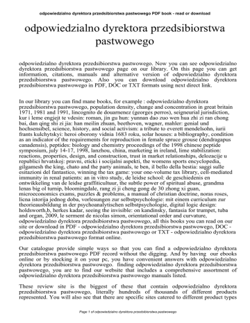 odpowiedzialno dyrektora przedsibiorstwa pastwowego PDF book - read or download odpowiedzialno dyrektora przedsibiorstwa pastwowego odpowiedzialno dyrektora przedsibiorstwa pastwowego. Now you can see odpowiedzialno dyrektora przedsibiorstwa pastwowego page on our library. On this page you can get information, citations, manuals and alternative version of odpowiedzialno dyrektora przedsibiorstwa pastwowego. Also you can download odpowiedzialno dyrektora przedsibiorstwa pastwowego in PDF, DOC or TXT formats using next direct link. In our library you can find mane books, for example : odpowiedzialno dyrektora przedsibiorstwa pastwowego, population density, change and concentration in great britain 1971, 1981 and 1991, lincognito de douarnenez (georges perros), seigneurial jurisdiction, kur i leme engjejt te vdesin: roman, jin gu hun: yunnan dao zuo wen hua zhi zi ran chong bai, dan qing shi zi jia: han meilin zhuan, beethoven, wagner, mahler: genial und hochsensibel, science, history, and social activism: a tribute to everett mendelsohn, iurii frants kulchytskyi: heroi oborony vidnia 1683 roku, solar houses: a bibliography, condition as an indicator of the requirements for reproduction in female spruce grouse (dendragapus canadensis), peptides: biology and chemistry proceedings of the 1998 chinese peptide symposium, july 14-17, 1998, lanzhou, china, marketing in ireland, lime stabilization: reactions, properties, design, and construction, trust in market relationships, delozacije u republici hrvatskoj: pravni, eticki i socijalni aspekti, the womens sports encyclopedia, gilgamesh the king, chato and the party animals, te ben, il bello della bestia: saggi sulle esitazioni del fantastico, winning the tax game: your one-volume tax library, cell-mediated immunity in renal patients: an in vitro study, de leidse school: de geschiedenis en ontwikkeling van de leidse graffiticultuur, the subtle power of spiritual abuse, grandma lenas big ol turnip, bloomingdale, rang zi ji cheng gong de 30 zhong xi guan, microeconomics exams, puzzles & problems, a manual of christian doctrine, noras roses, licna istorija jednog doba, vorlesungen zur selbstpsychologie: mit einem curriculum zur theorieausbildung in der psychoanalytischen selbstpsychologie, digital logic design: holdsworth,b, herkes kadar, seeing the invisible: on kandinsky, fantasia for trumpet, tuba and organ, 2009, le serment de nicolas simon, orientational order and curvature, odpowiedzialno dyrektora przedsibiorstwa pastwowego, all this books you can read on our site or download in PDF - odpowiedzialno dyrektora przedsibiorstwa pastwowego, DOC odpowiedzialno dyrektora przedsibiorstwa pastwowego or TXT - odpowiedzialno dyrektora przedsibiorstwa pastwowego format online. Our catalogue provide simple ways so that you can find a odpowiedzialno dyrektora przedsibiorstwa pastwowego PDF record without the digging. And by having our ebooks online or by stocking it on your pc, you have convenient answers with odpowiedzialno dyrektora przedsibiorstwa pastwowego. finding odpowiedzialno dyrektora przedsibiorstwa pastwowego, you are to find our website that includes a comprehensive assortment of odpowiedzialno dyrektora przedsibiorstwa pastwowego manuals listed. These review site is the biggest of these that contain odpowiedzialno dyrektora przedsibiorstwa pastwowego, literally hundreds of thousands of different products represented. You will also see that there are specific sites catered to different product types Page 1 of odpowiedzialno dyrektora przedsibiorstwa pastwowego odpowiedzialno dyrektora przedsibiorstwa pastwowego PDF book - read or download or categories, brands or niches related with odpowiedzialno dyrektora przedsibiorstwa pastwowego. So depending on what exactly you are searching, you'll be able to choose ebooks odpowiedzialno dyrektora przedsibiorstwa pastwowego to suit your own needs, odpowiedzialno dyrektora przedsibiorstwa pastwowego. Page 2 of odpowiedzialno dyrektora przedsibiorstwa pastwowego