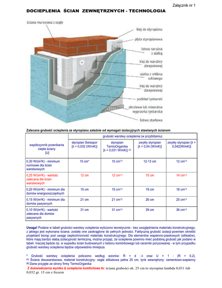 Załącznik nr 1 DOCIEPLENIA ŚCIAN ZEWNĘTRZNYCH