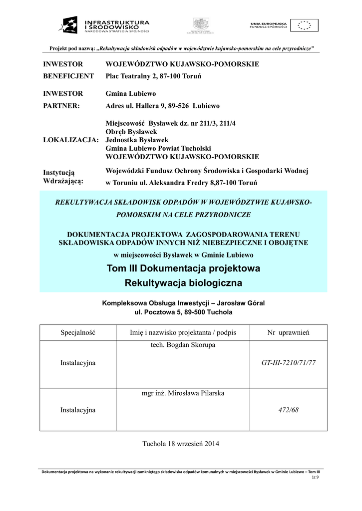 Tom III Dokumentacja projektowa Rekultywacja biologiczna
