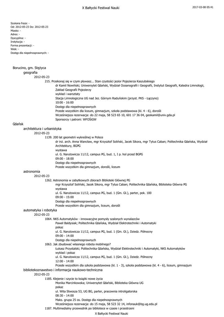 23 maja (środa) - Bałtycki Festiwal Nauki