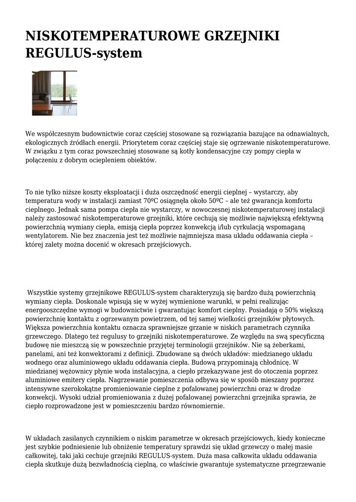 NISKOTEMPERATUROWE GRZEJNIKI REGULUS