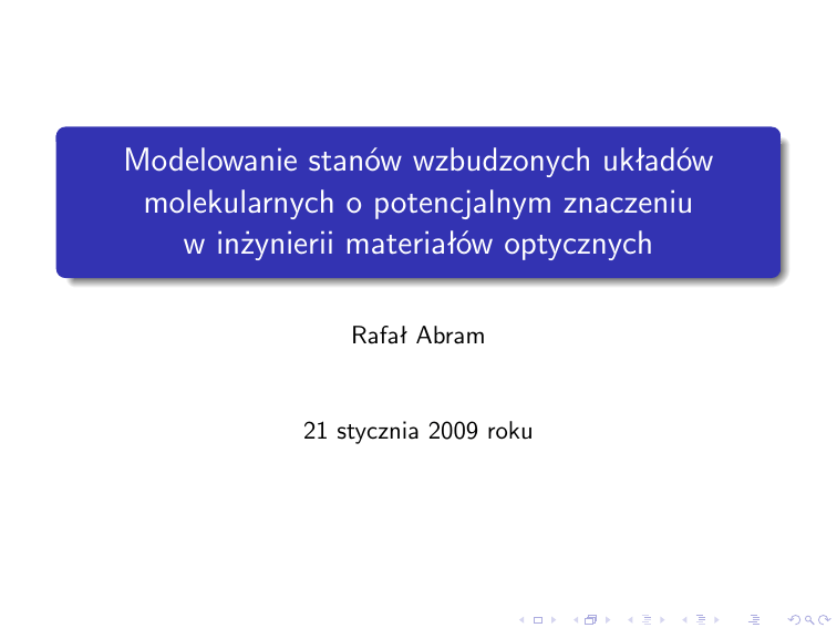 Modelowanie stanów wzbudzonych układów molekularnych o