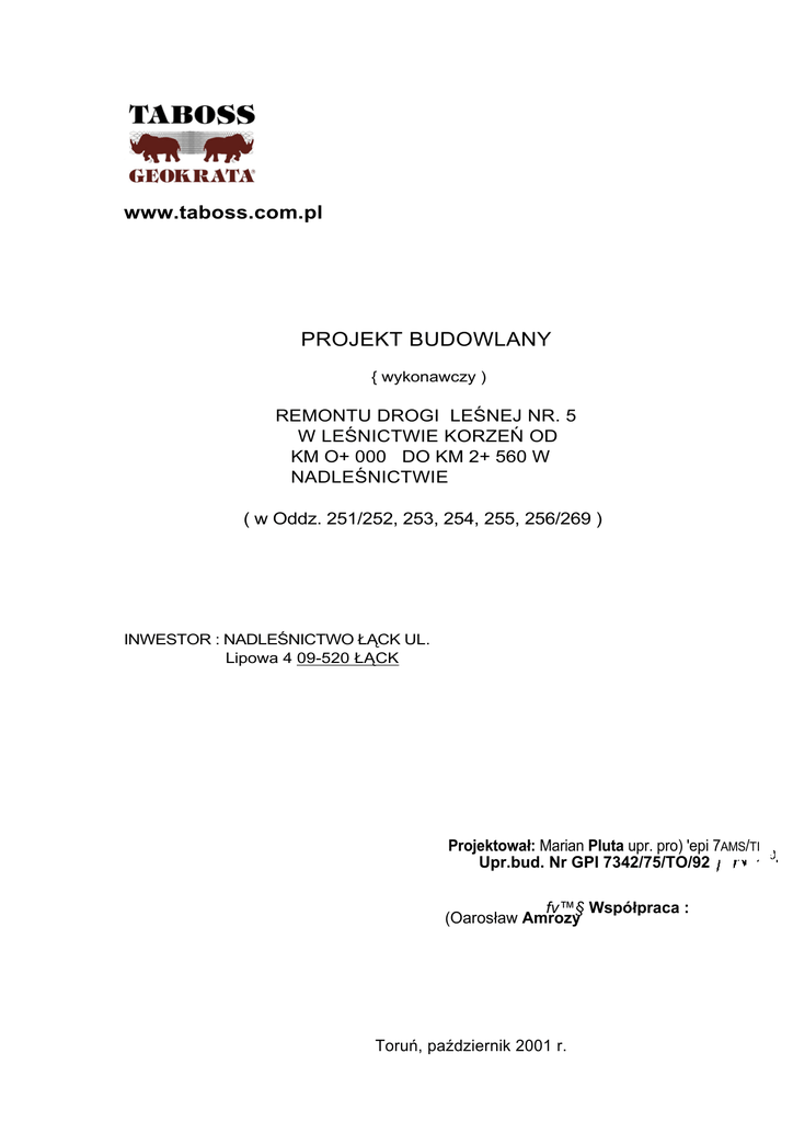 Korzeń Nadleśnictwa Łąck o długości 2560 m. Projekt budowlany- wykonawczy opracowano w