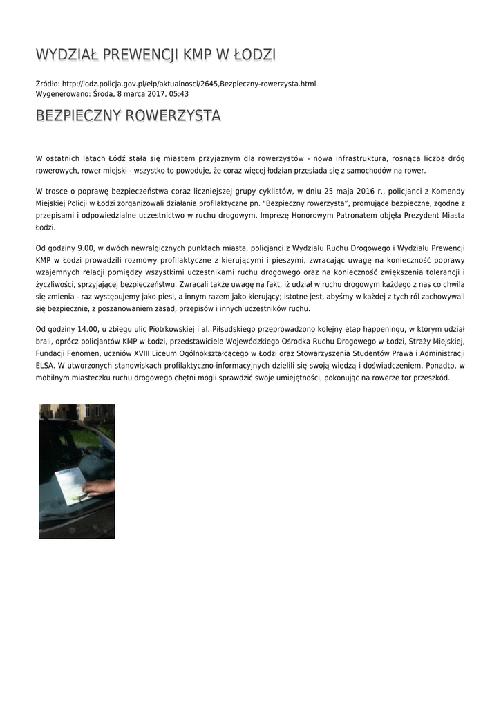 WYDZIAŁ PREWENCJI KMP W ŁODZI BEZPIECZNY ROWERZYSTA