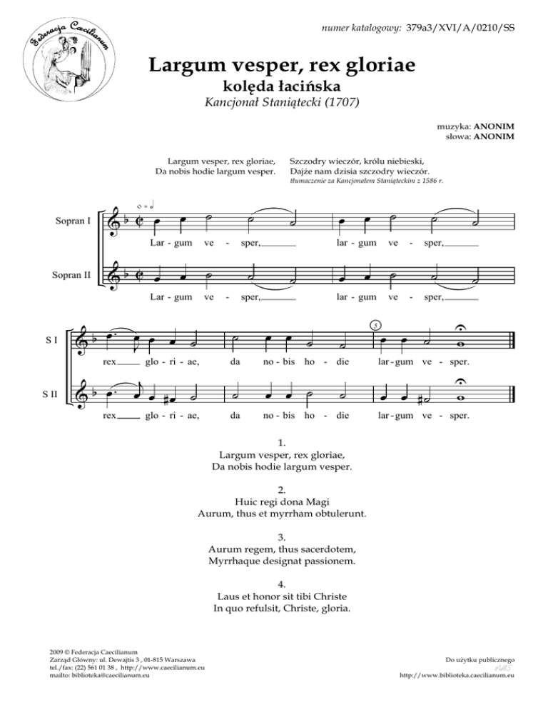 Largum vesper, rex gloriae - Biblioteka Caecilianum