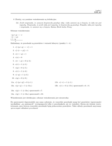 6 Zbadaj, czy poniższe wnioskowania są dedukcyjne. (b) Jeżeli