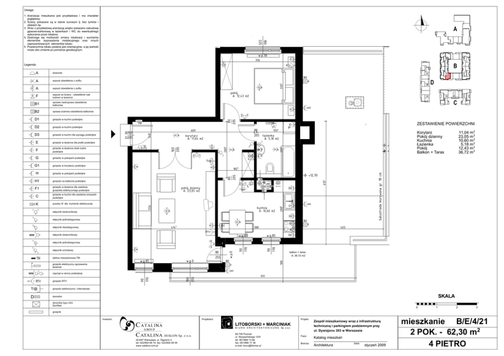 Uwaga: 1. Aranżacja mieszkania jest przykładowa i ma charakter poglądowy. 2. Ściany pokazane są w stanie surowym tj. bez tynków i okładzin itp. 3. Wraz z przykładową aranżacją wnętrz pokazano zabudowę gipsowo-kartonową w łazienkach i WC do ewentualnego wykonania przez lokatora. 4. Zastrzega się możliwość zmiany lokalizacji i wymiarów elementów wyposażenia instalacyjnego oraz innych zaprezentowanych elementów lokalu. 5. Powierzchnia lokalu podana jest orientacyjnie, a jej wartość może ulec zmianie po pomiarze geodezyjnym. 1 A 180 225 w.p.30 G 376 Legenda: G A dzwonek A wypust oświetlenia z sufitu B RTV B2 F wypust ze ściany - oświetlenie nad lustrem w łazience pokój A: 12,43 m2 C oprawa nastropowa oświetlenia balkonów G oprawa ścienna oświetlenia balkonów S 2 gniazdo w kuchni podwójne 25 TM E gniazdo w łazience dla pralki podw ójne F gniazdo w łazience obok lustra podwójne G gniazdo w pokojach podwójne G1 gniazdo w korytarzu podwójne H gniazdo w pokojach podwójne H1 gniazdo na balkonie podwójne F1 gniazdo w łazience dla zasilania grzejnika elektrycznego podw ójne 80 1935 205 łazienka 609 korytarz A: 11,04 m2 A: 5,18 m2 G 2 P A A F 1 G1 +13,55 +13,49 11,04 m 2 23,05 m 2 10,60 m 2 5,18 m 2 12,43 m 2 36,72 m 2 Korytarz Pokój dzienny Kuchnia Łazienka Pokój Balkon + Taras F T/@ H 1825 balustrada murowana gr. 18 cm H 2 pokój dzienny A: 23,05 m2 1 L D1 WŁ KS WK 6155 80 205 +12,70 D2 WO D2 ww gniazdo w kuchni dla zasilania zmywarki podwójne puszka 3f. dla kuchenki elektrycznej włącznik świecznikowy 1 2 kuchnia A: 10,60 m2 A D2 włącznik jednobiegunowy 1 H 4145 włącznik dwubiegunowy H1 C 2 D1 A D3 388 B2 4 403 3 3K A D 556 C 100 205 2805 gniazdo w kuchni dla wyciągu podw ójne ZESTAWIENIE POWIERZCHNI E F1 160 205 D3 1405 gniazdo w kuchni podwójne EI 30 D2 1 80 205 D1 H1 K B2 A 2805 B1 2 3305 wypust oświetlenia z sufitu 2885 1 A D 4 1 2 włącznik świecznikowy w.p.85 grzejnik elektryczny ogrzewania łazienek 80 255 w.p.0 B2 3 gniazdo telefoniczne / internetowe D domofon 931 180 255 90 170 gniazdo RTV T/@ balkon + taras A: 36,72 m2 H1 osprzęt w ramce podwójnej RTV D2 188 tablica mieszkaniowa TM w.p.0 3 H włącznik schodowy ww w.p.85 4 włącznik jednobiegunowy TM w.p.85 90 170 ww 90 170 RTV SKALA skrzynka typu mini DomNet 0 1 2 3 grzejnik Inwestor: Projektant: Projekt: LITOBORSKI + MARCINIAK B I U R O A R C H I T E K T O N I C Z N E Sp. z o.o. C ATALINA AVALON Sp. z o.o. 02-647 Warszawa, ul. Tagore'a 3 tel: 022/854 08 74, fax: 022/854 08 59 www.catalina.com.pl 60-749 Poznań ul. Wyspiańskiego 10/9 tel: 061/866 13 84 fax: 061/866 17 36 e-mail: [email protected] Zespół mieszkaniowy wraz z infrastrukturą techniczną i parkingiem podziemnym przy ul. Dywizjonu 303 w Warszawie Faza: Katalog mieszkań Branża: Architektura Data: styczeń 2009 mieszkanie B/E/4/21 2 POK. - 62,30 m2 4 PIETRO