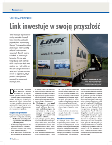 Zarządzanie STUDIUM PRZYPADKU Link inwestuje w swoją przyszłość Temat kryzysu jest cały czas obecny wśród przewoźników drogowych. Kryzys stanowi też punkt wyjścia przypadku, który zaprezentujemy. Dlaczego? Przede wszystkim dlatego, że czas kryzysu okazał się wielką próbą dla firm transportowospedycyjnych. Dla wielu tragiczną w skutkach, bo prowadzącą do bankructwa. Cały czas wiele firm próbuje po prostu przetrwać ciężkie czasy i na tym skupia swoje działania. Inne z kolei traktują ten okres jako szansę na wzmocnienie swojej pozycji rynkowej oraz dobry moment na rozpoznanie „słabych punktów” w funkcjonowaniu organizacji i na wprowadzenie stosownych zmian. D la spółki LINK z Wiązowny koło Warszawy – jednego z większych przedsiębiorstw transportowych w Polsce – okres kryzysu zapoczątkował zmiany w obszarze działalności operacyjnej, których efektem była wymiana wcześniej stosowanego systemu telematycznego i programów informatycznych do zarządzania transportem i spedycją. Rozpoznanie problemów W wyniku audytu organizacji zidentyfikowano następujące problemy: 1. W obszarze telematyki niedopasowany do obecnych potrzeb system: • brak elastycznego mechanizmu raportowania pracy kierowcy, • po stronie kierowcy brak powiązania zleceń z nawigacją, • brak możliwości skanowania dokumentów i przesyłania ich 22 - Truck&Business Od maja 2010 r. naczepy spółki LINK jeżdżą z reklamą swoich dostawców systemów informatycznych, co stanowi dowód na udaną współpracę wszystkich stron projektu. do biura w czasie rzeczywistym, • brak możliwości zdalnego przesyłania danych z karty kierowcy, • brak możliwości analizy i doskonalenia stylu jazdy kierowców, • system mało przyjazny w obsłudze, • system drogi w eksploatacji. 2. W obszarze rozwiązań informatycznych stosowanych w biurze doskwierała wielość rozwiązań nie do końca ze sobą powiązanych i wymagających dużego zaangażowania zasobów ludzkich: • brak jednego systemu, który wspierałby działalność transportową w sferze zleceń, planowania i zarządzania ich realizacją, rozliczeń kierowców i taboru, zarządzania flotą oraz analizy prowadzonej działalności, • braki w dziedzinie funkcjonalności uzupełniającej, takiej jak rozliczanie kosztów paliwa metodą paliwa spalonego, rozliczenie kosztów pozaoperacyjnych, rozliczenia z kierowcami i powiązanie tych kosztów ze zleceniami, udostępnianie informacji o realizacji zleceń poprzez „Internetowy Portal Klienta”, • wysokie koszty utrzymania wielu niepowiązanych ze sobą systemów, • mała elastyczność dotychczasowych dostawców w obszarze rozwoju systemów. Poszukiwanie rozwiązań W kolejnym kroku firma LINK rozpoczęła poszukiwanie rozwiązań informatycznych, które z jednej strony wyeliminowałyby wszystkie zidentyfikowane słabości dotąd stosowanych systemów, z drugiej stanowiłyby kompletne i kompleksowe rozwiązanie, pozwalające na optymalne wykorzystanie posiadanych zasobów firmy, w konsekwencji prowadząc do obniżenia kosztów działalności. Proces analizy, oceny i wyboru docelowych rozwiązań trwał ponad cztery miesiące. Ostateczny wybór padł na firmy: InterLAN (polski producent systemu interLAN SPEED dedykowanego dla działalności transportowo-spedycyjno-logistycznej) oraz Punch Telematix (belgijski producent rozwiązań telematycznych). Kluczowymi czynnikami wyboru były doświadczenia obu firm we współpracy z dużymi przedsiębiorstwami transportowymi, poparte referencjami, jak i współpraca dostawców w zakresie integracji systemów interLAN SPEED i CarCube. Ponadto obie firmy zadeklarowały możliwość rozwoju interfejsu na indywidualne potrzeby LINK. GŁÓWNE KORZYŚCI WDROŻENIA ZINTEGROWANEGO SYSTEMU INTERLAN SPEED I PUNCH TELEMATIX NIE LADA WYZWANIE Piotr Laube International Project Manager LINK – Wdrożenie systemu CarCube w firmie LINK było niemałym wyzwaniem ze względu na wysoko postawione wymagania klienta. Jednak otwartość naszej platformy telematycznej i łatwość konfiguracji urządzeń w połączeniu ze sprawnie prowadzonymi pracami nad interfejsem w oprogramowaniu InterLAN SPEED sprawiło że projekt przebiegł bez większych utrudnień. Typowe dla tak złożonego przedsięwzięcia jest to, że ostateczne wymagania zmieniają się w trakcie jego realizacji – dzięki trafnie wybranym partnerom nie stanowiło to problemu. NIESKOŃCZONY PROCES Paweł Moder wiceprezes zarządu LINK – Dla nas pozyskanie i realizacja projektu w LINK było nie lada wyzwaniem – po pierwsze dlatego, że kilka lat temu, na etapie wyboru poprzedniego rozwiązania, nasz system został odrzucony ponieważ był zbyt „mały”, a po drugie dlatego, że LINK jest świadomym i wymagającym klientem. Dziś mogę powiedzieć, że podołaliśmy temu wyzwaniu. LINK pracuje na naszym systemie we wszystkich zakontraktowanych umową obszarach. Niemniej jednak w związku z ciągle zmieniającym się otoczeniem, chęcią doskonalenia jak i konkurencyjną sytuacją na rynku, wdrożenie systemu informatycznego jest procesem nieskończonym, czego dowodem jest otwarta lista zmian w systemie. LEPSZE ZARZĄDZANIE Patryk Grzelak dyrektor zarządzający InterLAN – Ostatni kryzys gospodarczy wyeliminował wielu liczących się graczy z rynku usług transportowych. Przyczyn było wiele, lecz skutek ten sam – gwałtowne pogorszenie płynności finansowej skutkujące brakiem możliwości kontynuacji działalności. Wdrożenie w naszej firmie zintegrowanego systemu, który dwustronnie wymienia dane z systemem finansowo-księgowym oraz w sposób przejrzysty umożliwia bieżące sprawdzanie i zarządzanie limitami kredytowymi i bieżącym zadłużeniem, pozwoliło nam na znaczną poprawę funkcjonujących mechanizmów monitorowania płatności klientów. Pomogło to nam skutecznie ograniczyć ryzyko związane z niewypłacalnością nierzetelnych kontrahentów, jak i istot