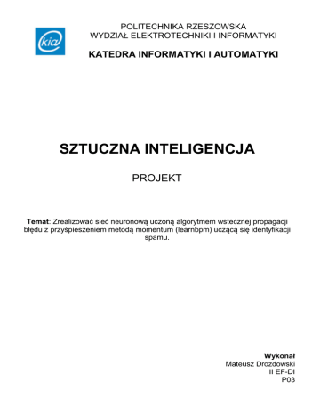 Temat: Zrealizować sieć neuronową uczoną algorytmem wstecznej propagacji