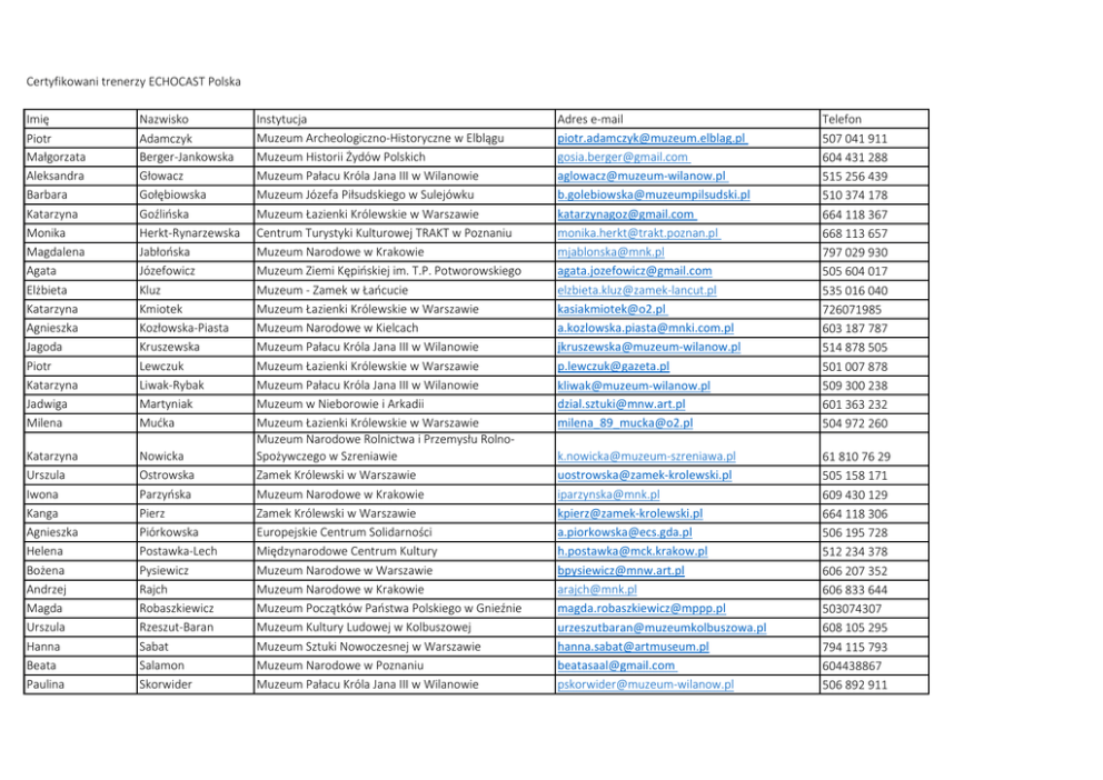 Certyfikowani trenerzy ECHOCAST Polska Imię Nazwisko Instytucja