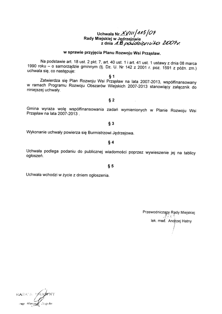 w sprawie przyjgciaplanu RozwojuWsi prz4slaw.