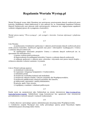 Regulamin Wortalu Wystap.pl