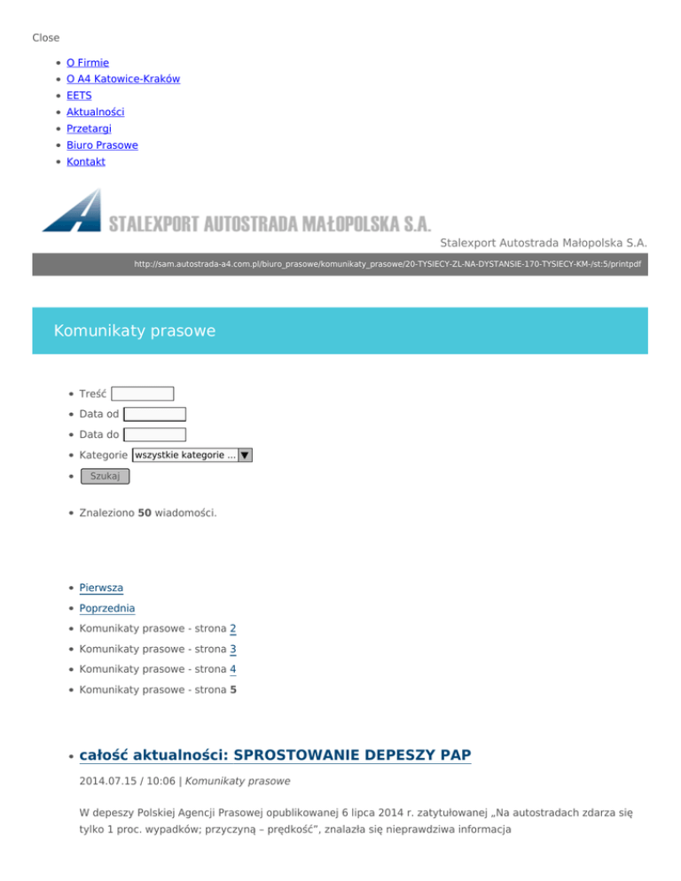 Komunikaty prasowe - Stalexport Autostrada Małopolska S.A.