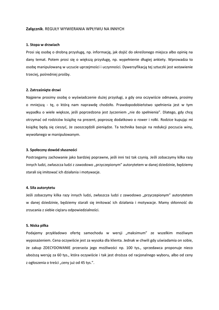 Załącznik. REGUŁY WYWIERANIA WPŁYWU NA INNYCH