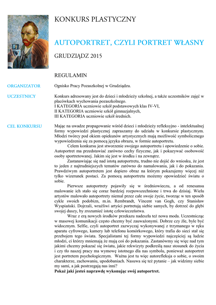 Regulamin -autoportret KONKURS PLASTYCZNY