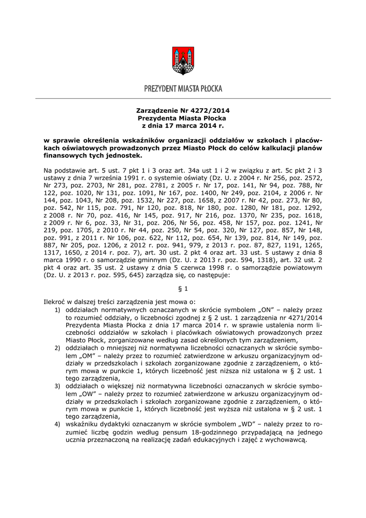 Zarządzenie Nr 4272/2014 Prezydenta Miasta Płocka z dnia 17