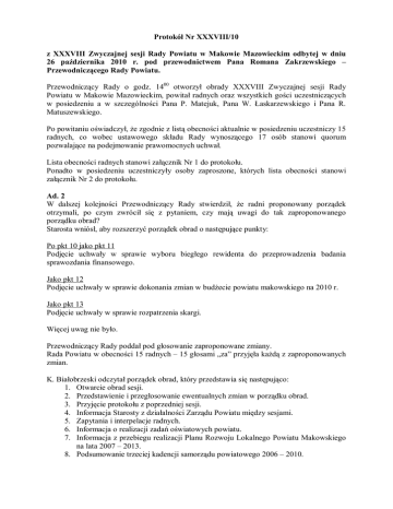 Protokół Nr XXXVIII/10 - Starostwo Powiatowe w Makowie
