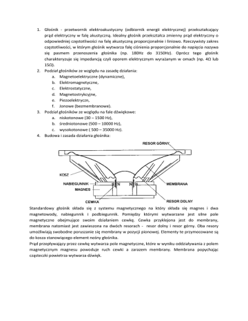 1. Głośnik - przetwornik elektroakustyczny (odbiornik energii