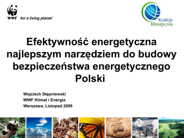Efektywność energetyczna najlepszym narzędziem do budowy bezpieczeństwa energetycznego Polski Wojciech Stępniewski WWF Klimat i Energia Warszawa, Listopad 2009 Jak ograniczać emisję CO2 do atmosfery • Efektywność energetyczna – przemysł (nowe technologie), transport, gospodarstwa domowe (termodernizacja; etykiety energetyczne, budynki pasywne), • Wykorzystanie źródeł energii odnawialnej • Konwersja na gaz ziemny i kogeneracja (wysoka sprawność produkcji energii) • Wykorzystanie mechanizmów Protokołu z Kioto • W przyszłości wykorzystanie wodoru w ogniwach paliwowych, CCS, zgazowywanie węgla, sztuczna fotosynteza, synergia węglowo-jądrowa Bezpieczeństwo energetyczne (definicja: wikipedia) • Bezpieczeństwo energetyczne - stan braku zagrożenia przerwaniem dostaw paliw i energii. • Stan ten zapewnia dywersyfikacja dostaw importowanych paliw oraz zwiększanie wydobycia ze złóż krajowych - ropy naftowej, gazu ziemnego oraz wykorzystanie krajowych złóż węgla, co pozwala na nieprzerwaną pracę systemu energetycznego kraju w sytuacji przerwania dostaw z jednego źródła. Do zwiększenia bezpieczeństwa energetycznego może również przyczyniać się rozproszenie źródeł energii. • A co z negawatami i negadżulami? Produkcja energii elektrycznej w Polsce • 93% energii elektrycznej produkowanej w elektrowniach zawodowych pochodzi z węgla • Moc zainstalowana 34,7 tys. MW • Obowiązek przedstawienia świadectwa pochodzenia na energii ze źródeł odnawialnych. • Opłata zastępcza 258,89 PLN za megawatogodzinę energii przy niewypełnieniu obowiązku Generacja energii L p. Opcja technologiczna Produkcja energii elektrycznej Emisja CO2 TWh/r mln tCO2/r 1. Istniejące elektrownie węglowe, z częściową modernizacją 92,3 85,1 2. Nowe elektrownie węglowe 5000 MW 38,0 30,8 3. Istniejące i nowe elektrownie gazowe 6,6 2,6 4. Energia ze źródeł odnawialnych: wiatr + biomasa 27,6 - 5. Poprawa efektywności energetycznej – zaoszczędzona energia Razem 40,0 - 204,5 118,5 Przesył energii i stand-by • Straty transmisyjne przesyłu elektryczności rzędu 11% • „Inteligentne” sieci i mierniki • Redukcja systemów stand-by (sensoryka), przechodzenie do stanów rezerwy zimnej przy systemach ogrzewania budynków • Idea Supergrid Potencjał zmniejszenia zużycia energii w przemyśle • 20-30% całkowitego zużycia energii • Sytuacja zróżnicowana co do technologii (n.p. przemysł cementowy ma bardzo dobre wskaźniki efektywności) • Oświetlenie; ogrzewanie i c.w.u., lokalne kotłownie/ciepłownie systemowe; napędy elektryczne, sieci elektryczne i cieplne • Zmiana technologii Potencjał zmniejszenia zużycia energii • Gospodarstwa domowe i SME 40% potencjału (raport WWF/FEWE) • Usługi chłodzenia; gotowania; zmywania • Oświetlenie (1/4 zużycia energii) • Termomodernizacja; automatyka regulacyjna; odzysk ciepła z wentylacji; modernizacja kotłów grzewczych i ogrzewaczy przepływowych; kolektory słoneczne; kotłownie osiedlowe Potencjał zmniejszenia zużycia energii • • • • • Napędy elektryczne 0,75 kW – 3000 kW Regulacja częstotliwościowa Pompy odśrodkowe 4kW – 130 kW Pompy obiegowe > 3kW Potencjał oszczędności 12 432 GWh/rok Potencjał zmniejszenia zużycia energii w nowobudowanych budynkach • Wymagania ochrony cieplnej zliberalizowane • Polska ma najsłabszy współczynnik sezonowego zapotrzebowania na energię • Budownictwo pasywne nie istnieje (kilka obiektów) • Katastrofa z certyfikatami energetycznymi • EPBD fatalnie wdrożona Łączny potencjał wynikający z raportu FEWE wynosi 212 TWh rocznie • Efektywność cieplna budynków mieszkalnych i SME 67% • Sprawność wytwarzania energii 19% • Napędy elektryczne 5,8% • AGD 4,6 % Potencjał zmniejszenia zużycia energii i redukcji emisji w transporcie • Brak zachęt do kupna samochodów elektrycznych i hybrydowych, flex-fuel • Zachęty fiskalne do kupna aut SUV • Polscy producenci aut elektrycznych • Infrastruktura elektryczna w Warszawie • Buspasy dla taxi, nie dla elektrycznych • Biodiesel dostępny, Bioetanol E-85 niedostępny Twierdzenie, że efektywność energetyczna nie poprawia bezpieczeństwa energetycznego jest błędne. Efektywność elektryczna i cieplna jest źródłem „negawatów” i „negadżuli” i najtańszym sposobem zapewnienia nieprzerwanych dostaw energii i usług.