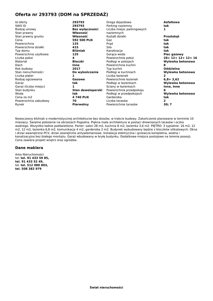 Oferta nr 293793 (DOM na SPRZEDAŻ)
