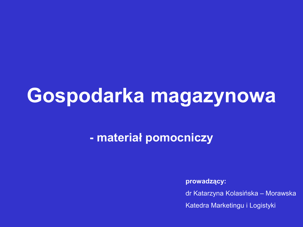 Gospodarka magazynowa - dr Kolasińska