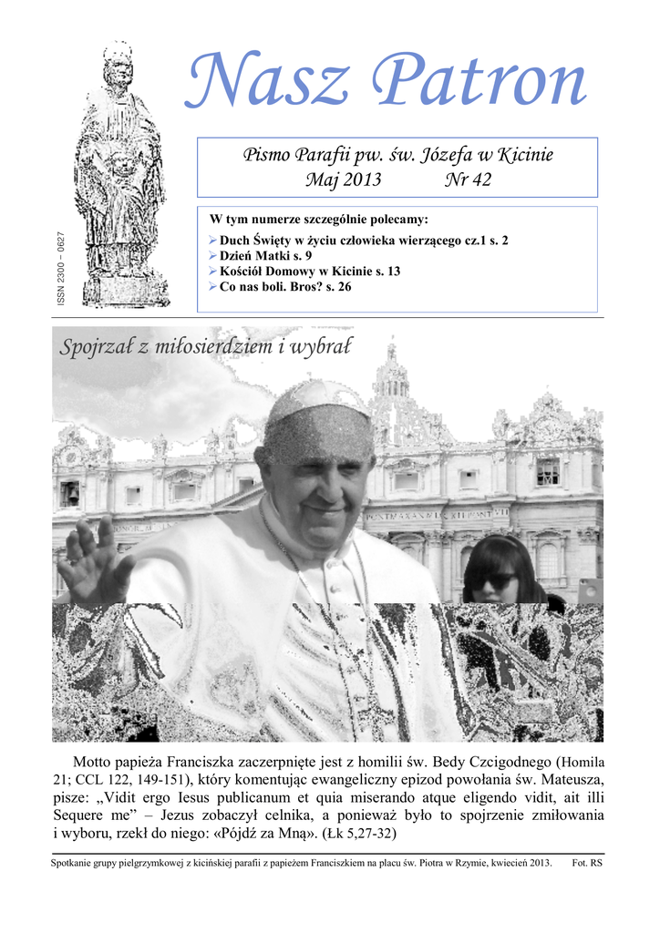 Nasz Patron Pismo Parafii pw. św. Józefa w Kicinie Maj 2013 Nr 42 ISSN 2300 – 0627 W tym numerze szczególnie polecamy: Duch Święty w życiu człowieka wierzącego cz.1 s. 2 Dzień Matki s. 9 Kościół Domowy w Kicinie s. 13 Co nas boli. Bros? s. 26 Spojrzał z miłosierdziem i wybrał Motto papieża Franciszka zaczerpnięte jest z homilii św. Bedy Czcigodnego (Homila 21; CCL 122, 149-151), który komentując ewangeliczny epizod powołania św. Mateusza, pisze: „Vidit ergo Iesus publicanum et quia miserando atque eligendo vidit, ait illi Sequere me” – Jezus zobaczył celnika, a ponieważ było to spojrzenie zmiłowania i wyboru, rzekł do niego: «Pójdź za Mną». (Łk 5,27-32) Spotkanie grupy pielgrzymkowej z kicińskiej parafii z papieżem Franciszkiem na placu św. Piotra w Rzymie, kwiecień 2013. Fot. RS Słowo Naszego Proboszcza Słowo księdza proboszcza W liturgii słowa okresu wielkanocnego spotykamy się z opisem początków Kościoła. Dzieje Apostolskie ukazują entuzjazm pierwotnej wspólnoty wierzących, którzy z radością przyjmowali słowo Chrystusa Zmartwychwstałego i przekazywali je w swoim środowisku. Św. Łukasz zanotował, że „jeden duch i jedno serce ożywiały wszystkich wierzących” (Dz 4, 32). W jakimś sensie spotykamy się z „eksplozją” wiary w okolicznościach bardzo niesprzyjających dziełu ewangelizacji. Apostołowie z wielką mocą, która pochodziła od Ducha Świętego, nauczali wiary i przekazywali ją zarówno Żydom, jak i poganom. Pierwotna wspólnota wierzących, czyli pierwotny Kościół musiał staczał bój nie tylko o przetrwanie, ale jeszcze bardziej o dotarcie ze światłem ewangelii aż po krańce świata. W Dziejach Apostolskich czytamy, że ci którzy uwierzyli w Chrystusa, przebywali razem i wszystko mieli wspólne: „Trwali oni w nauce apostołów i we wspólnocie, w łamaniu chleba i w modlitwach” (Dz 2, 42). Te cztery czynniki określały sposób życia wierzących. Tak jest i dziś, że Kościół trwa w wierności ewangelii, we wspólnocie, na Eucharystii i na modlitwie. To jest sposób życia Kościoła. Ci, którzy wyznają wiarę Kościoła, opierają swoje życie na tych czterech filarach. Możemy powiedzieć, że ich postawę wyrażają następujące stwierdzenia: Bóg – tak, Chrystus – tak, Kościół – tak. To prawda, że dzisiaj dość często zarysowuje się inna postawa: Bóg – tak, Chrystus –tak, Kościół – nie. Osoby hołdujące temu myśleniu, po pewnym czasie mówią: Bóg – tak, Chrystus – nie, Kościół – nie. W ostateczności w krótszej czy dalszej perspektywie zrodzi się trzeci docelowy wariant: Bóg – nie, Chrystus – nie, Kościół – nie. Radość, która towarzyszyła apostołom i uczniom Pańskim, jest dla nas wzorem i drogowskazem. Przy takiej wierze jaką mieli apostołowie, trwanie w Kościele, w posłuszeństwie nauce apostołów jawi się jako oczywista i pewna droga ku Panu Bogu. Ci, którzy wierzą wiarą Kościoła, potrzebują wspólnoty, w której Chrystus jest Mistrzem, a my Jego uczniami. Gdzie Jezus przestaje być traktowany jako Mistrz, tam też zanikają Jego uczniowie. Człowiek bez Boga, bez wiary w Chrystusa żyje w samotności, pustce i mroku. Przeprowadzone niedawno we Włoszech badania na temat sytuacji młodzieży mówią, że młodzi ludzie są niepewni, zamknięci w życiu prywatnym, cierpią na brak zaufania w stosunku do bliźnich i zasadniczo czują się samotni. Opis ten może się równie dobrze odnosić do polskiej rzeczywistości, do ludzi karmiących się bezkrytycznie papką zlaicyzowanych mediów (takich jak większość kolorowych magazynów, programów telewizyjnych i internetowych). To rodzi poczucie zagubienia, odczucie, jak napisał bł. Jan Paweł II „gasnącej nadziei” (Ecclesia in Europa 7). Chrześcijanie wiedzą, że wiara jest konieczna człowiekowi do życia jak powietrze. Jedynie ona rozjaśnia mrok egzystencji, wyprowadza z labiryntu bezsensu, daje radość i nadzieję. Niech taka wiara będzie w każdym z nas. ks. Andrzej Magdziarz Duch Święty w życiu człowieka wierzącego cz.1 Zbliżająca się uroczystość Pięćdziesiątnicy zachęca do refleksji nad osobą Ducha Świętego: kim jest, jak działa, jak wreszcie wygląda nasza z Nim relacja. Zanim jednak skoncentrujemy całą naszą uwagę na Duchu Świętym, potrzebne jest kilka słów wprowadzenia. Duch Święty jest Bogiem. To po pierwsze. Jest Osobą Trójcy Świętej, ale – dotykając tu niezgłębionej tajemnicy struktury Boga – nie jest ani „trzecią” z osób, bo zakładałoby to jakąś wewnętrzną hierarchię ważności; ani nie jest też jakąś Jej „częścią”, bo Bóg, jako byt bezwzględnie doskonały, nie może mieć w sobie żadnej 2 złożoności. Jest absolutnie prosty (łac. omnia simplex). To ziarenko teologii na wstępie jest potrzebne, abyśmy nie wyobrażali sobie Boga „na nasz obraz i podobieństwo”, ani nie myśleli o Trójcy jako o samotnym ojcu, który razem z synem hodują gołębia... Kiedy zatem mówimy, myślimy, kontemplujemy, modlimy się do Ducha Świętego, czynimy to zawsze z konsekwencją włączenia w to całego Boga, dotykamy i Jezusa, i Boga Ojca. Dotykamy Trójcy, w której Bóg Ojciec wszystko oddaje Synowi, Syn wszystko oddaje Ojcu, a w niewyMaj 2013 Z życia Kościoła obrażalnej miłości ta dynamiczna wymiana staje się Osobą – właśnie Duchem Świętym. Tajemnica Trójcy – w tym Świętego Ducha – jest niezgłębiona. Spodobało się jednak Bogu objawić człowiekowi prawdę o sobie w takim stopniu, w jakim tylko człowiek jest w stanie ją pojąć. Czynił to (i wciąż czyni) w całej historii zbawienia. Cały Stary Testament jest przesycony obecnością i stopniowym odkrywaniem Ducha – począwszy już od drugiego wersetu Biblii (gdzie Duch Boży, Ruah Elohim, unosił się nad wodami), przez księgi prorockie (gdzie Duch Boży ogarniał wybrańców pańskich) czy ksi