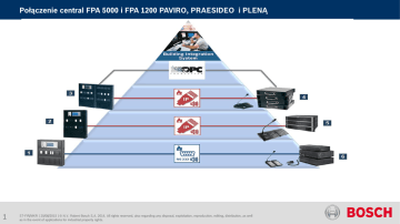 Połączenie central FPA 5000 i FPA 1200 PAVIRO, PRAESIDEO i PLENĄ 1 ST-FIR/MKR | 20/08/2015 | © N.V. Robert Bosch S.A. 2014. All rights reserved, also regarding any disposal, exploitation, reproduction, editing, distribution, as well as in the event of applications for industrial property rights. FIRE-EVAC Smart Safety Link Lepsze połączenie Dostępna od wersji FSP-5000-RPS V4.3.11 i wyżej Każdy panel FPA może mieć jedno połączenie do Praesideo Zwiększona funkcjonalność Inteligentne i bezpieczne połączenie jest obecnie stosowane w dużych projektach ADC OPC+VA PRS-NCO3 PRS-NCO3 BIS Zwiększona elastyczność Panel Network CAN bus Brak konieczności stosowania dodatkowych połączeń między kontrolerami Praesideo do wyzwalania komunikatów alarmowych. 2 ADC VA Do każdego połączenia potrzebna jest tylko karta VA Tylko przy połączeniu w technologii Can-bus ST-FIR/MKR | 20/08/2015 | © N.V. Robert Bosch S.A. 2014. All rights reserved, also regarding any disposal, exploitation, reproduction, editing, distribution, as well as in the event of applications for industrial property rights. ADC VA PRS-NCO3 FIRE-EVAC Smart Safety Link PAVIRO Dostępny od Sierpnia 2015 4 kanały IN-OUT w matrycy Od 12 do 492 stref głośnikowych Klasa –D wzmacniaczy 2x500W Zalety: Niższe zużycie energii Ekstremalnie elastyczna architektura systemu Oszczędność kosztów konfiguracji zapasowych wzmacniaczy Inteligentne i bezpieczne połączenie zawarte w urządzeniu Konfiguracja przez ustawienia Praesideo Wprowadzenie planowane w 2015 roku 3 ST-FIR/MKR | 20/08/2015 | © N.V. Robert Bosch S.A. 2014. All rights reserved, also regarding any disposal, exploitation, reproduction, editing, distribution, as well as in the event of applications for industrial property rights. FIRE-EVAC Smart Safety Link Różne możliwości połączenia Unikalne rozwiązanie na rynku! Skalowalność: 3 różne typy systemów ostrzegawczych (VAS=DSO) Elastyczność: Wiele połączeń w systemie (1 na centralę) ADC VA ADC VA PAVIRO Praesideo BIS Panel Network CAN bus Plena VAS RS232 4 ST-FIR/MKR | 20/08/2015 | © N.V. Robert Bosch S.A. 2014. All rights reserved, also regarding any disposal, exploitation, reproduction, editing, distribution, as well as in the event of applications for industrial property rights.