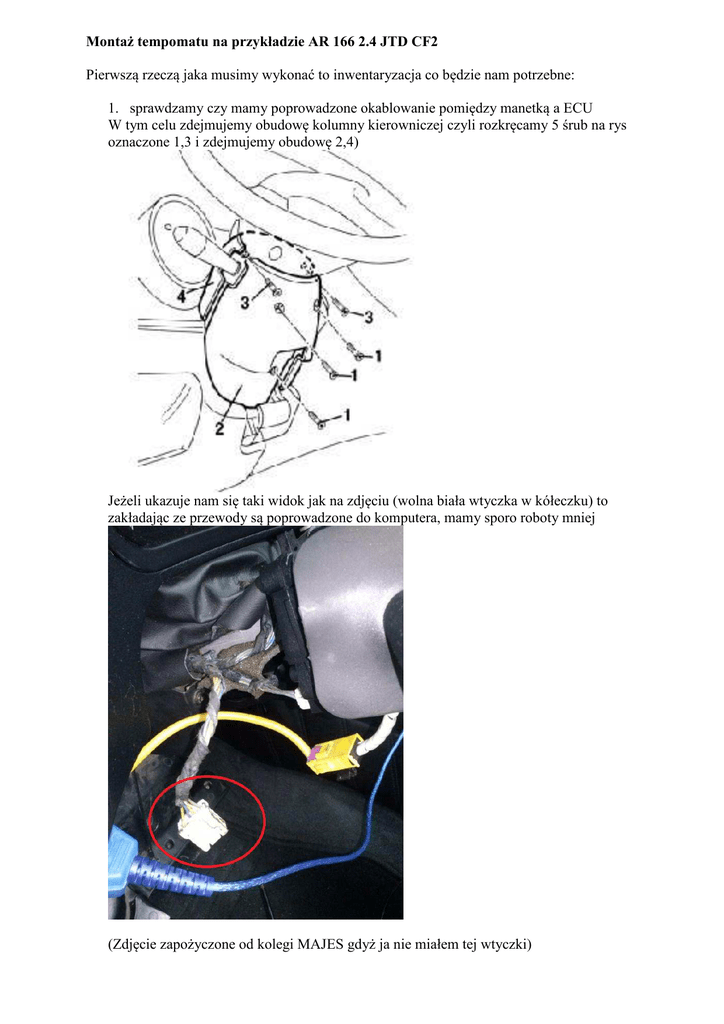 Montaż tempomatu na przykładzie AR 166 2.4 JTD CF2 Pierwszą rzeczą