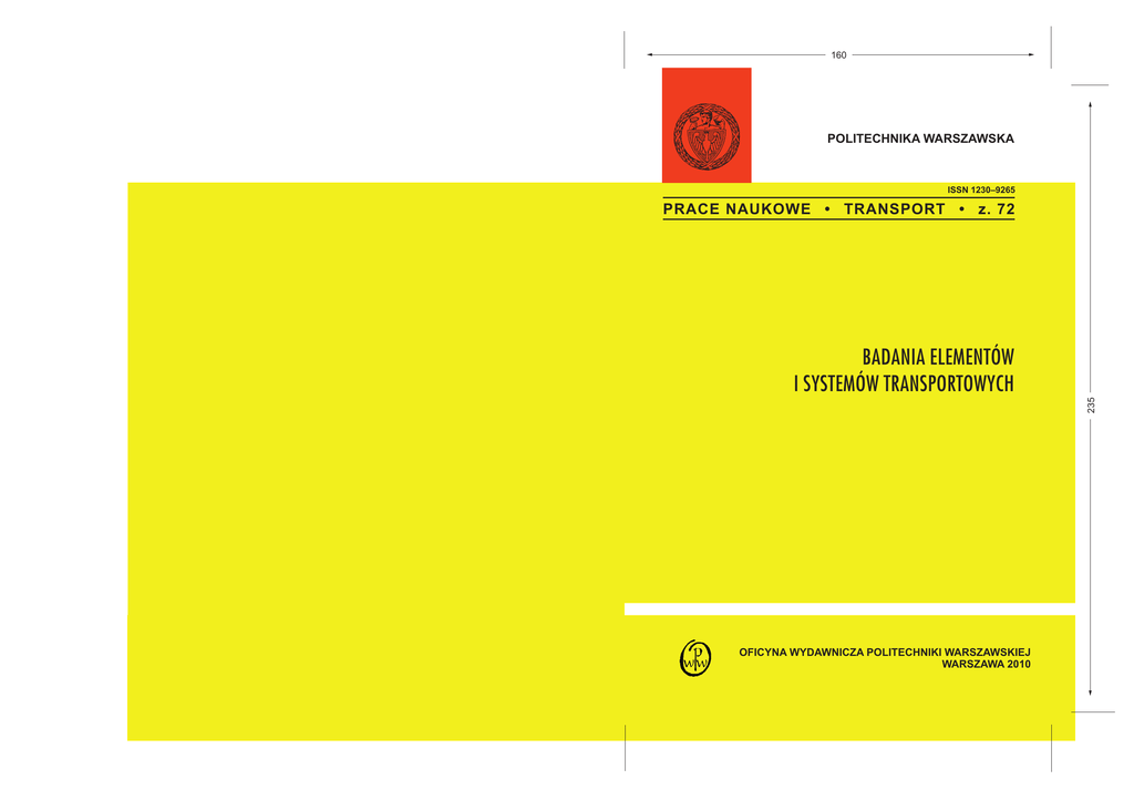 160 POLITECHNIKA WARSZAWSKA ISSN 1230–9265 BADANIA ELEMENTÓW I SYSTEMÓW TRANSPORTOWYCH OFICYNA WYDAWNICZA POLITECHNIKI WARSZAWSKIEJ WARSZAWA 2010 235 PRACE NAUKOWE • TRANSPORT • z. 72 Spis rzeczy – Contents W o d z i m i e r z C h o r o m a s k i , J e r z y K o w a r a - Wybrane zagadnienia modelowania transportu typu Personal Rapid Transit .............................................................. 5 Selected issues in modeling Personal Rapid Transit System I l o n a J a c y n a , D a r i u s z P y z a - Wybrane wskaniki oceny infrastruktury transportowej w aspekcie komodalnoci ................................................................................. 25 Selection of infrastructure evaluation criteria in aspect of co-modality Z b i g n i e w K a s p r z y k , M i r o s a w S i e r g i e j c z y k - Metoda oceny niezawodnoci eksploatacyjnej systemu telematyki autostradowej w celu opracowania jego strategii eksploatacj .................................................................................... 47 The methodology of operational reliability evaluation of the telematic highway system in the aim of the study of his exploitation strategy T o m a s z K r u k o w i c z - Poprawa efektywnoci sterowania adaptacyjnego poprzez optymalizacj przej midzyfazowych .................................................................................. 59 Improvement of adaptive control efficiency using interstage optimisation J a c e k K u k u l s k i - Symulacja statycznych obcie nawierzchni kolejowej z kompozytem tuczniowym .................................................................................................... 77 The simulation of static loading track structure with ballast composite M a r i u s z M a c i e j e w s k i , W i e s a w Z a b o c k i - Wybrane problemy tworzenia funkcji i równa zalenociowych w systemach srk .............................................................. 87 Method of creating the interlocking function and equations in ATC systems A g n i e s z k a S k a l a - P o n i a k - Zjawisko decouplingu w gospodarce w okresie transformacji .......................................................................................................................... 101 Decoupling in a transition economy Jolanta ak, Roland Jachimowski, Ilona Jacyna, M i c h a K o d a w s k i , K o n r a d L e w c z u k - Funkcje realizowane przez podsystemy Systemu Logistycznego Polski ......................................................................... 115 Functions performed by subsystems of Logistics System of Poland PRACE NAUKOWE POLITECHNIKI WARSZAWSKIEJ z. 72 Transport 2010 Wodzimierz Choromaski, Jerzy Kowara Wydzia Transportu Politechnika Warszawska WYBRANE ZAGADNIENIA MODELOWANIA TRANSPORTU TYPU PERSONAL RAPID TRANSIT Rkopis dostarczono, lipiec 2010 Streszczenie: Referat dotyczy wybranych zagadnie modelowania sieci torowej oraz dynamiki pojazdów transportu Personal Rapid Transit. W pracy przedstawiono krótk charakterystyk transportu PRT wskazujc na problemy struktury torowej i dynamiki pojazdu. Zaprezentowano struktur ukadu jezdnego i propozycj struktury torowej w oparciu o badania systemu PRT. Omówiono zagadnienia projektowania krzywych przejciowych dla toru PRT. Ponadto przedstawiono model 3D pojazdu opracowany w systemie CATIA oraz wybrane wyniki bada symulacyjnych przeprowadzonych w systemie ADAMS. Przedstawione zagadnienia stanowi integraln cz prac zwizanych z opracowaniem koncepcji systemu PRT. Sowa kluczowe: Personal Rapid Transit, dynamika pojazdów PRT, modelowanie i symulacja SELECTED ISSUES IN MODELING PERSONAL RAPID TRANSIT SYSTEM Summary: The paper concerns the selected problems of conceptual and modeling track researches and dynamics of PRT vehicles. A brief characterization of PRT transport has been presented indicating the problems of track structures and vehicle dynamics. Also the concept structure of bogie and track system has been outlined based on the PRT researches. Some aspects of the design of spiral transition curves on PRT tracks are discussed. Additionally, a three-dimensional simulation model of a PRT vehicle and selected simulation results have been presented. All of the examples used for concepts explanation have been generated with the ADAMS and CATIA software. Discussed issues are integral part of the conceptual design of PRT system. Keywords: Personal Rapid Transit, dynamics of PRT, modeling and simulation Recenzent: Krzysztof Zboiski PRACE NAUKOWE POLITECHNIKI WARSZAWSKIEJ z. 72 Transport 2010 Ilona Jacyna, Dariusz Pyza Politechnika Warszawska Wydzia Transportu WYBRANE WSKANIKI OCENY INFRASTRUKTURY TRANSPORTOWEJ W ASPEKCIE KOMODALNOCI Rkopis dostarczono: sierpie 2010 Streszczenie: W artykule przedstawiono wybrane sposoby definiowania wskaników oceny infrastruktury transportowej w aspekcie realizacji usug logistycznych. Wskazano, e podstaw do formuowania rónych wskaników efektywnoci funkcjonowania systemu w tym i systemu transportowego powinien by zadany zbiór celów i zada jakie ma realizowa ten system. Wybrane wskaniki mog by wykorzystywane w pracach analitycznych dotyczcych komodalnoci transportu. Wskaniki podzielono na trzy grupy: wskaniki do oceny udziau pracy przewozowej rónych gazi transportu w poszczególnych rodzajach transportu, syntetyczne wskaniki dostpnoci sieci transportowych oraz wskaniki oceny infrastruktury transportu w aspekcie jego komodalnoci. Sowa kluczowe: wskaniki, komodalno, ocena infrastruktury, transport SELECTION OF INFRASTRUCTURE EVALUATION CRITERIA IN ASPECT OF COMODALITY Abstract: The paper presents selected aspects of defining indicators for evaluating transport infrastructure in aspect of providing logistics services. The formulation of various system effectiveness indicators in the transportation system should be given on a base of set of aims and objectives to be realized by system. Selected indicators that can be used in analytical work on co-modality of transport are defined. The in