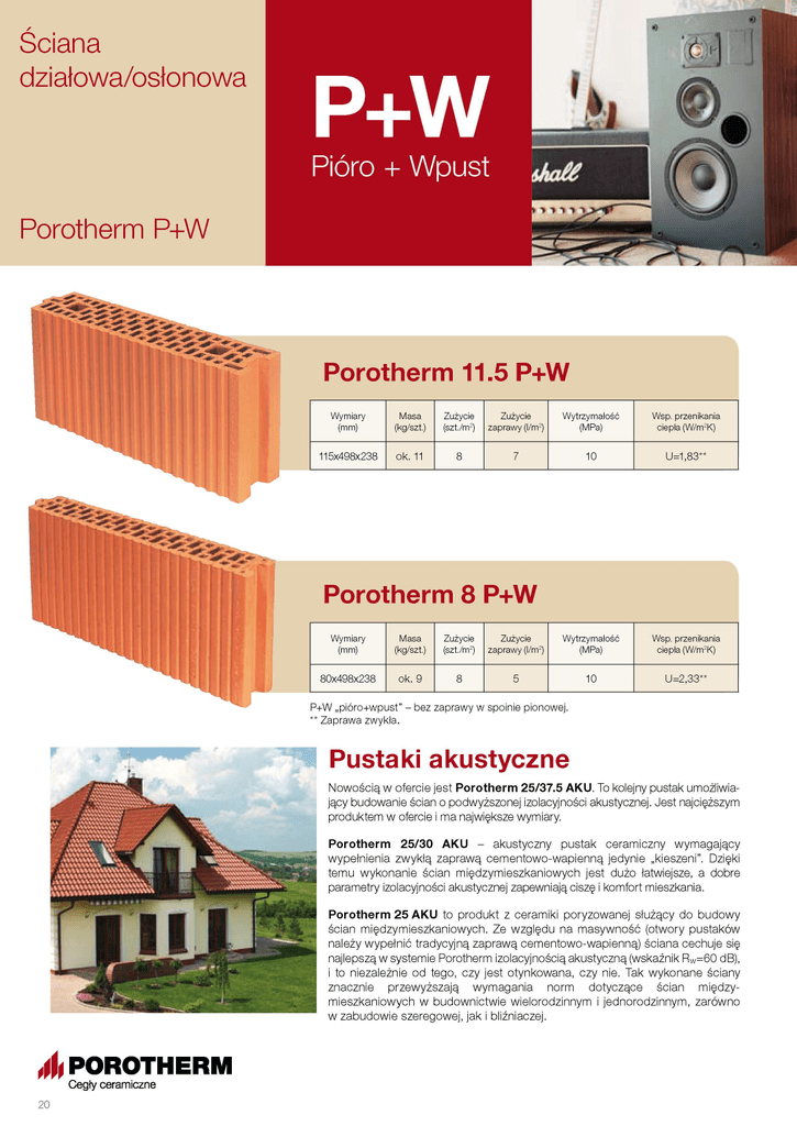 Ściana dziatowa/ostonowa Porotherm P+W Pióro + Wpust datę
