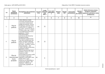 Załącznik nr 1b do SIWZ- Formularz rzeczowo-cenowy Znak sprawy: AZP-240/PN-p14/012/2011 1 2 1 Olej do parkietu 2 Olej do parkietu 3 Płyn do maszynowego mycia posadzek Liczba Cena netto Szczegółowy opis przedmiotu Jednostka jednostek jednostkow miary zamówienia miar a (SZT.) 3 4 Lekko alkaliczny środek czyszczący przeznaczony do czyszczenia zaolejowanych podłóg drewnianych, zawiera komponenty usuwające brud, szt. wartość PH 9-10, gęstość 1,1 kg na dm³, roztwór 0,2 litra na 10 litrów wody, typu CARLS CLEANER lub równoważne, pojemność 5 litrów Olej konserwujący przeznaczony do okresowej pielęgnacji podłóg drewnianych zaolejowanych. Typ oleju estryfikowany olej talowy zawartość substancji szt. stałych ok. 25% gęstość 0,80 kg na dm. sześcienny, roztwór nierozcieńczalny, typu CARLS 25D lub równoważne,, pojemność 5 litrów Płyn do maszynowego mycia posadzek, zawiera ≥ 5-<15% niejonowe środki powierzchniowoczynne, mydło zawierające kompozycje zapachowe (cytronellol, cytra, szt. linalol), PH 12, płyn bezbarwny do lekkożółtego o cytrusowym zapachu, typu NEOMAT FORTE lub równoważne, pojemność 10 litrów 5 6 Wartość netto Stawka VAT Cena brutto jednostkowa 7 8 9 Artykuł oferowany (nazwa handlowa, producent, pojemność, gramatura, cechy (Kol.7xkol.8) podstawowe) Wartość brutto 10 11 32 32 8 Strona1 Lp. Nazwa przedmiotu zamówienia Chemia specjalistyczna - część II 6 Środek do gruntownego czyszczenia urządzeń sanitarnych Środek do gruntownego czyszczenia urządzeń sanitarnych, skutecznie usuwa rdzę, kamień wodny, osady wapienne i cementowe, i urynowe oraz resztki mydła; koncentrat, typu MERIDA SUPER SANITIN lub równoważne, pojemność 10 litrów Załącznik nr 1b do SIWZ- Formularz rzeczowo-cenowy szt. 32 szt. 16 szt. 22 Strona2 Znak sprawy: AZP-240/PN-p14/012/2011 Płyn o składzie: niejonowe związki powierzchniowo Płyn do czynne 5-15%, mydło <5% czyszczenia i rozpuszczalne w wodzie pielęgnacji z rozpuszczalniki, substancje pielęgnujące, substancje 4 komponentam zapachowe (limonen, linalon, i lilial), postać płynna, zapach antypoślizgow przyjemny PH 10, typu DOPOMAT SECUR lub ymi równoważne, pojemność 10 litrów Środek wyłącznie do zastosowania profesjonalnego, przeznaczony do wszystkich zmywalnych powierzchni np. szkło, marmur, powierzchnie z tworzyw sztucznych, czyści nie pozostawiając smug. Środek Płyn o przyjemnym zapachu, czyszczący Zawiera <5% anionowych i 5 niejonowych środków ogólnego zastosowania powierzchniowo czynnych, Zawiera kompozycje zapachowe (Limonene, Linalool, Butylphenyl Methylpropional, Citronellol, Coumarin), typu BRIAL TOP lub równoważne, pojemność 5 litrów Chemia specjalistyczna - część II Znak sprawy: AZP-240/PN-p14/012/2011 Środek do mycia gruntownego wodoodpornych, zasadoodpornych i wrażliwych na działanie zasad wykładzin podłogowych takich jak: linoleum, guma, PCV, Zmywacz do poliolefiny, kamień naturalny i sztuczny. Zawiera niejonowe 7 starych środki powierzchniowo czynne powłok < 5%, Mydło < 5%, Środki rozpuszczalne w wodzie, Środki zwiększające rozpuszczalność, Aromaty, Barwniki, typu COPEX lub równoważne, pojemność 5 litrów Załącznik nr 1b do SIWZ- Formularz rzeczowo-cenowy szt. 4 Suma wartości netto Wartość podatku VAT Suma wartości brutto Cena ofertowa netto (Suma wartości netto) wynosi………………………………………………………………………………………PLN Słownie ……………………………………………………………………………………………………………………………………PLN Stawka podatku VAT ………………………………………………………………………………….% Wartość podatku VAT wynosi…………………………………………………………………………………………………………….PLN Słownie……………………………………………………………………………………………………………………………………..PLN Cena ofertowa brutto wynosi……………………………………………………………………………………………………………….PLN Słownie……………………………………………………………………………………………………………………………………..PLN …………………………………………………… dnia …………………………………2011 r. ……………………………………………………………………………………………………………….. Podpis i pieczątka osoby/osób upoważnionych do reprezentowania Wykonawcy Strona3 1. Zamawiający zastrzega, ze zaproponowany przez Wykonawcę w ramach niniejszego postępowania asortyment winien spełniad wszystkie wymogi podane w załączniku nr 1a do SIWZ. W związku z tym niezbędnym jest wypełnienie przez Wykonawcę w szczególności kolumny nr 11 załącznika nr 1a do SIWZ w sposób precyzyjny, kompletny i jednoznaczny. UWAGA! Chemia specjalistyczna - część II Znak sprawy: AZP-240/PN-p14/012/2011 Załącznik nr 1b do SIWZ- Formularz rzeczowo-cenowy Nie wypełnienie kolumny Nr 11 w sposób precyzyjny, kompletny i jednoznaczny spowoduje odrzucenie oferty, zgodnie z art. 89 ust. 1 pkt 2 Ustawy z dnia 29 stycznia 2004 roku – Prawo zamówieo publicznych. 2. W zakresie asortymentów, Zamawiający dokonując i ich opisu wskazał nazwę handlową (nazwę producenta). Tym samym Zamawiający wskazał minimalny dopuszczalny standard jakościowy produktów. W tym zakresie Zamawiający dopuszcza oferowanie produktów równoważnych tj. zaproponowanie produktów innych producentów, o innej nazwie handlowej, które posiadają nie gorsze cechy jakościowe, wydajnościowe, użytkowe, od produktów wskazanych przez Zamawiającego. UWAGA! W przypadku zaproponowania przez Wykonawcę produktu równoważnego, Wykonawca z