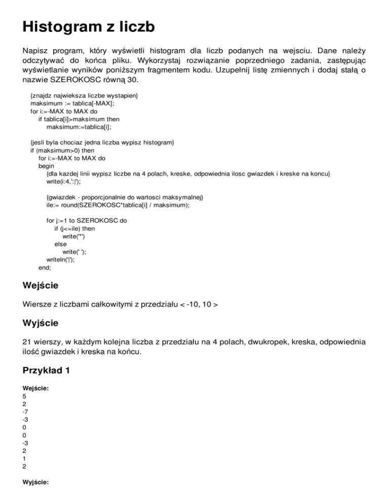 Napisz program, który wyświetli histogram dla liczb podanych na wejsciu. Dane należy