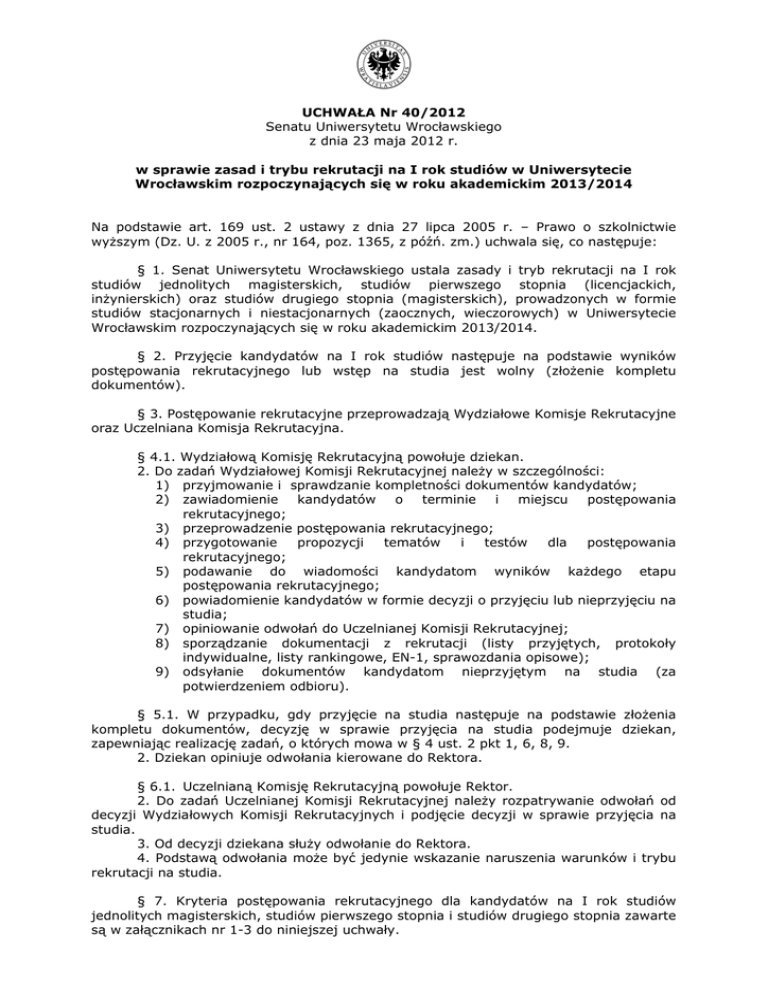 Uchwała Nr 40_2012 Senatu UWr z dnia 23.05.2012 r. w sprawie