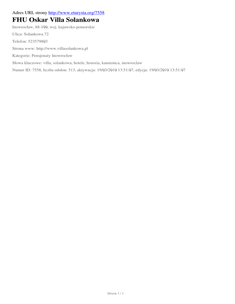 FHU Oskar Villa Solankowa, Inowroclaw, Solankowa 72