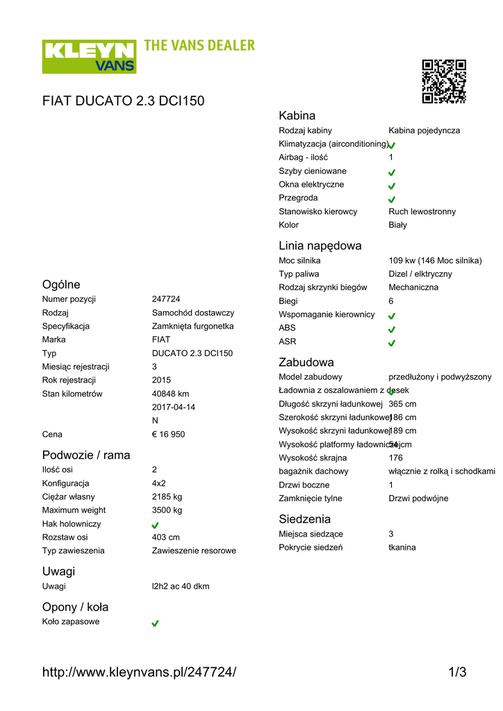 http://www.kleynvans.pl/247724/ 1/3 FIAT DUCATO 2.3 DCI150