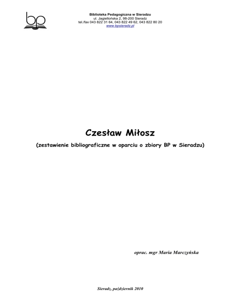 czeslaw milosz - Biblioteka Pedagogiczna w Sieradzu